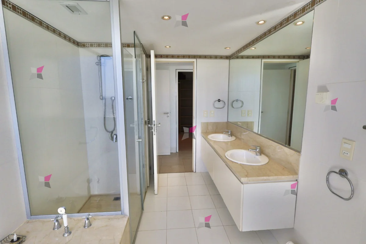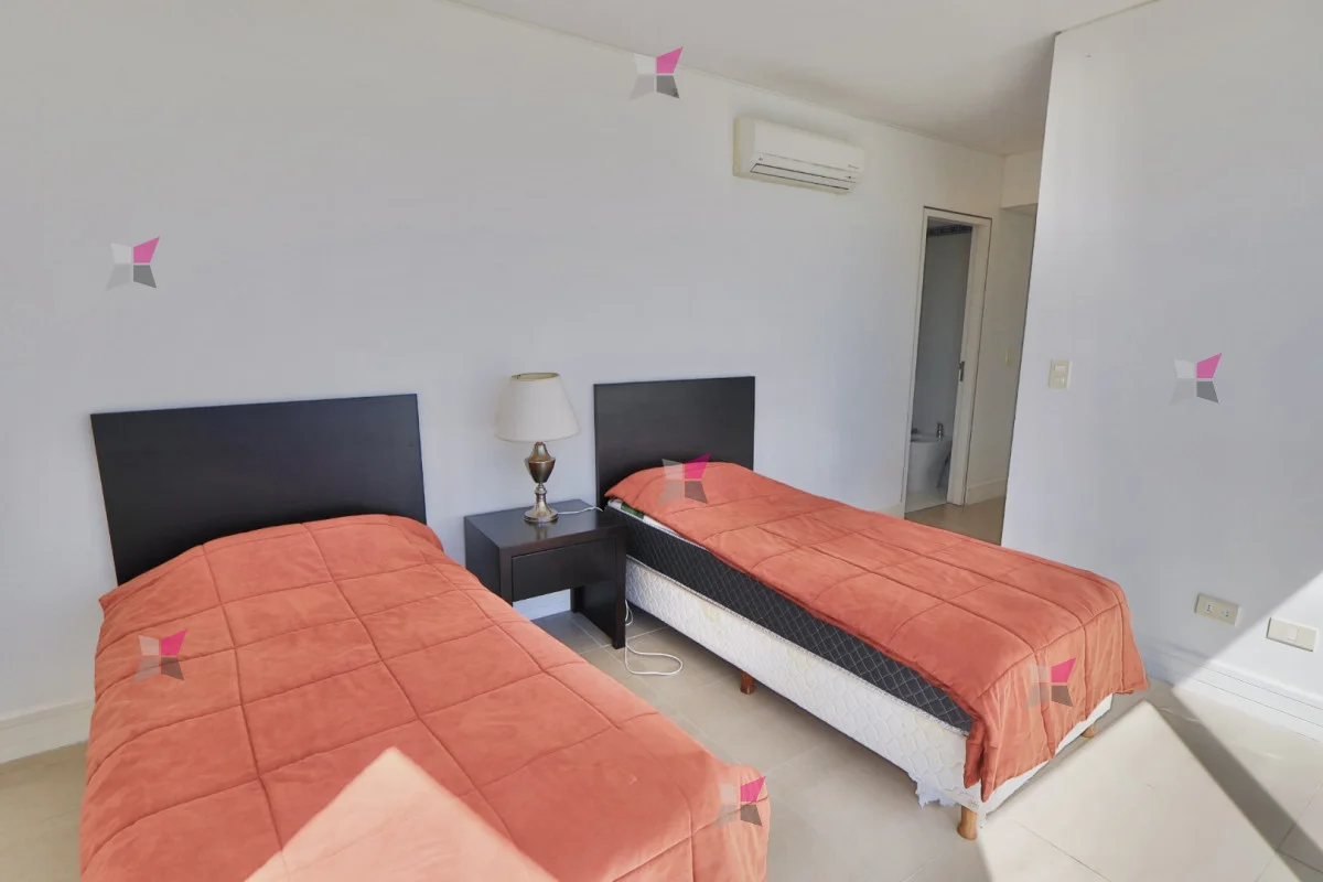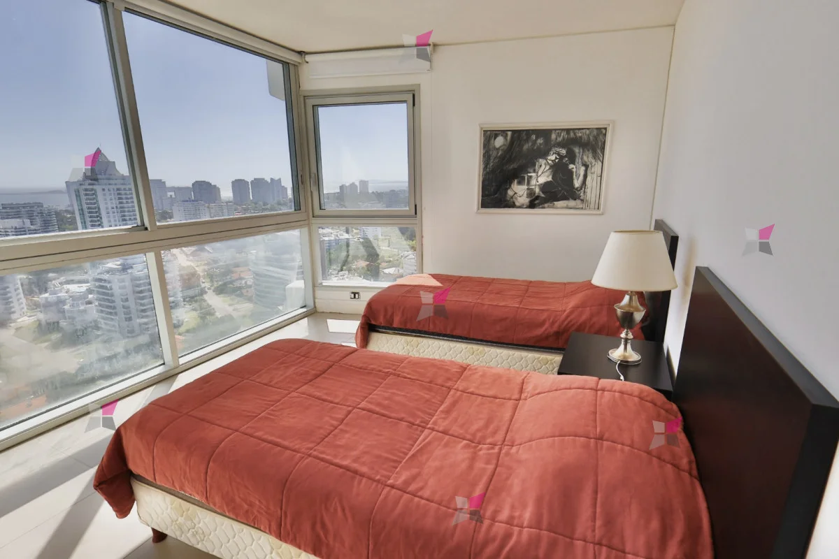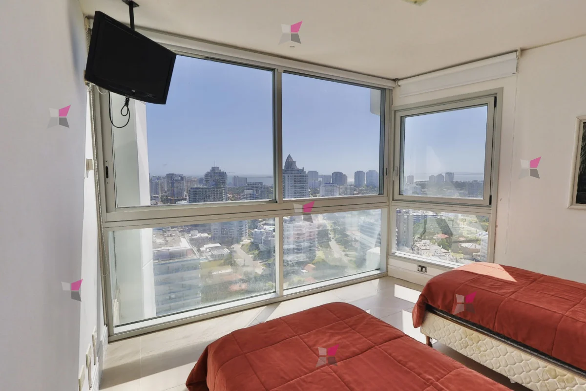 La distribución incluye toilette de recepción y tres dormitorios en suite, todos con vestidor. El dormitorio principal, además, cuenta con acceso a un balcón cerrado ideal para aprovechar durante todo el año. Todos los ambientes disfrutan de excelentes vistas tanto al mar como a la ciudad.
