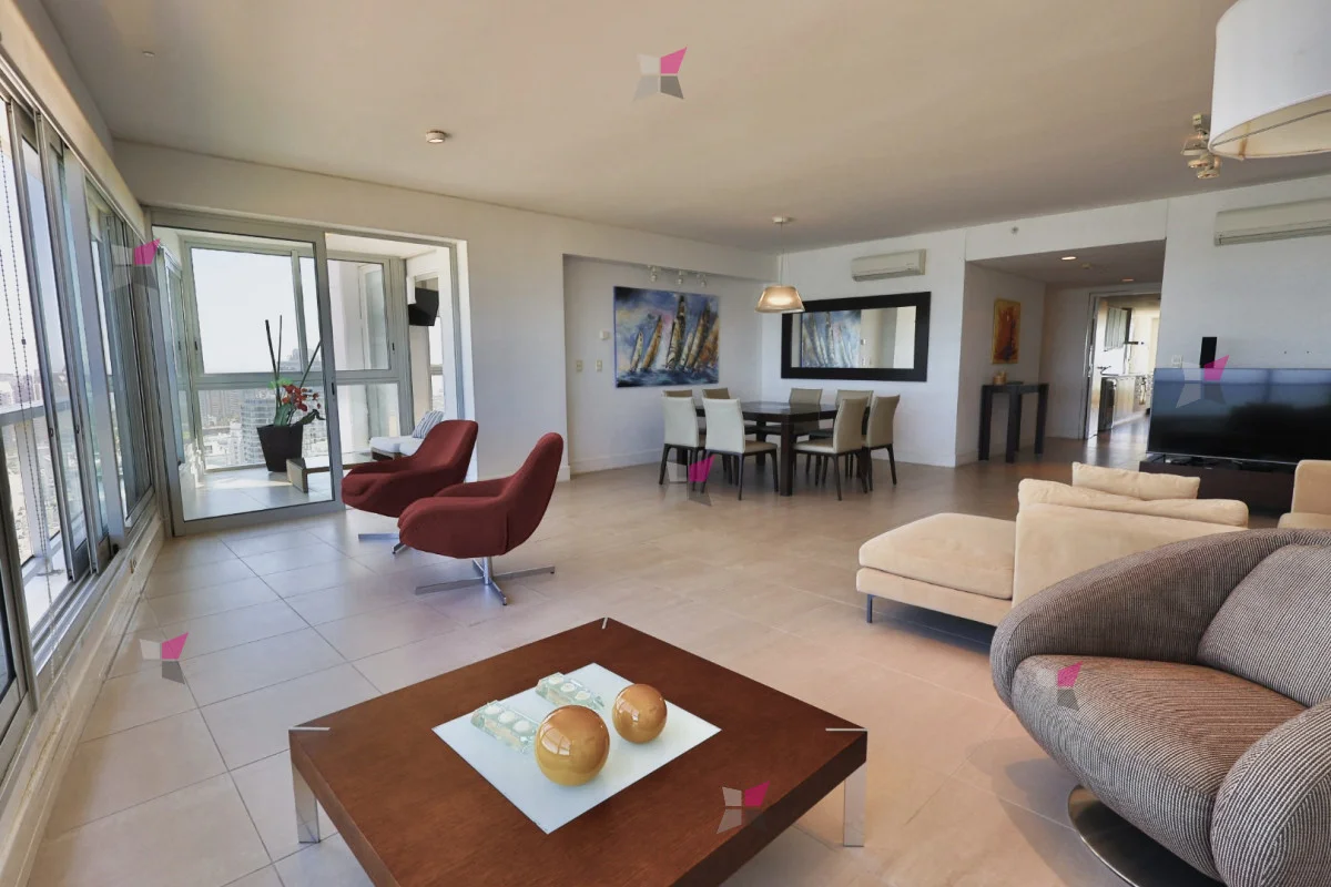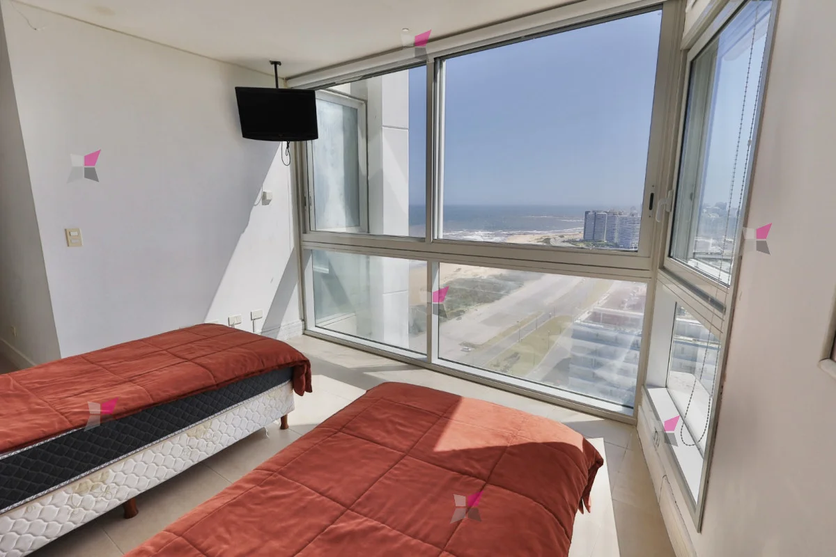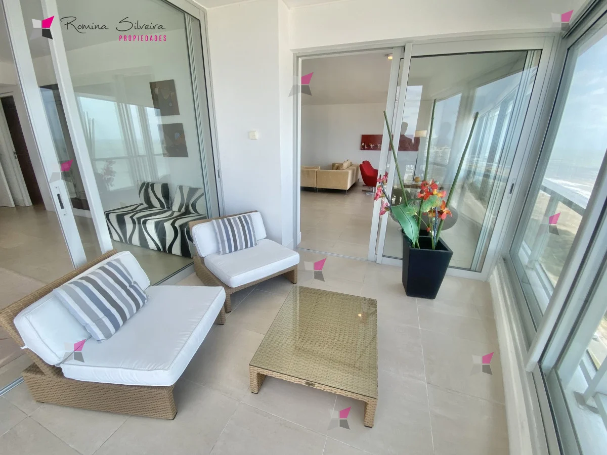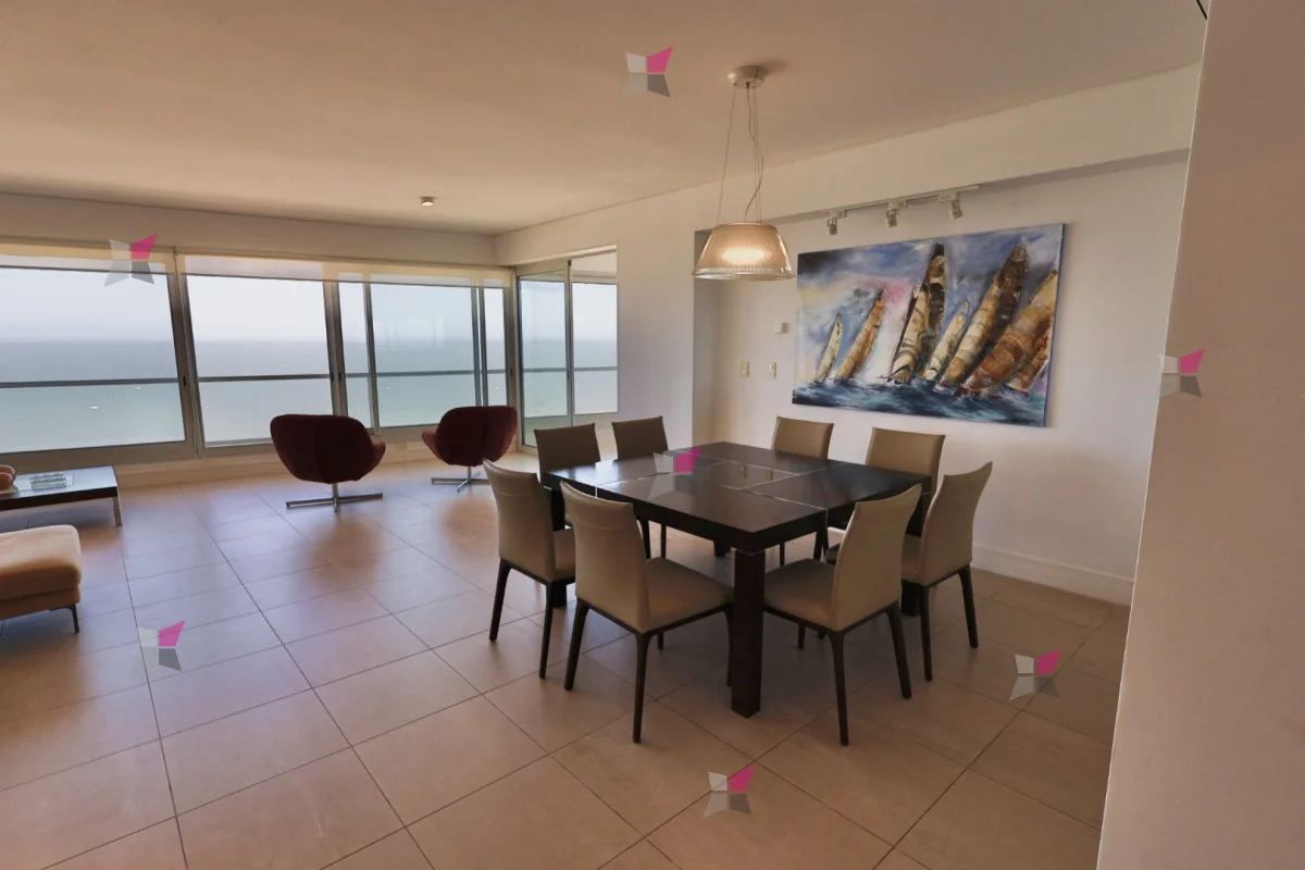 Ubicada en primera línea de Playa Brava, en Parada 8, esta unidad en Le Parc ofrece 195 m² propios y se encuentra en un piso alto con vistas amplias y despejadas. El living comedor destaca por su panorámica directa a la playa, mientras que la cocina definida incorpora área de lavadero y dependencia de servicio con baño.