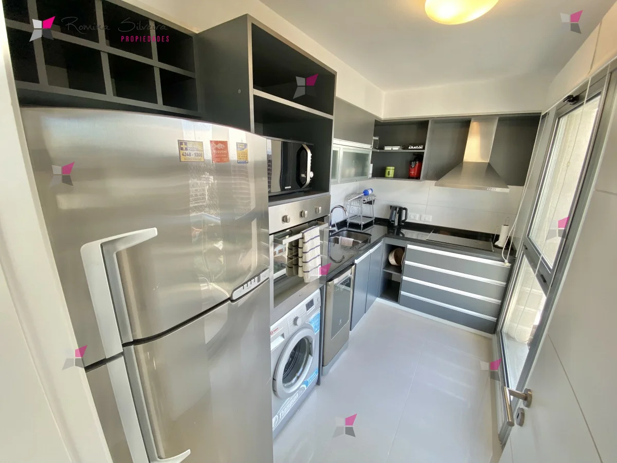 Cuenta con living comedor amplio con salida al balcón y vista al mar , cocina definida , 2 dormitorios con salida a otro balcón con orientación a Playa Mansa , 2 baños , 1 de ellos en suite. Garaje en sub-suelo. Losa radiante sectorizada.