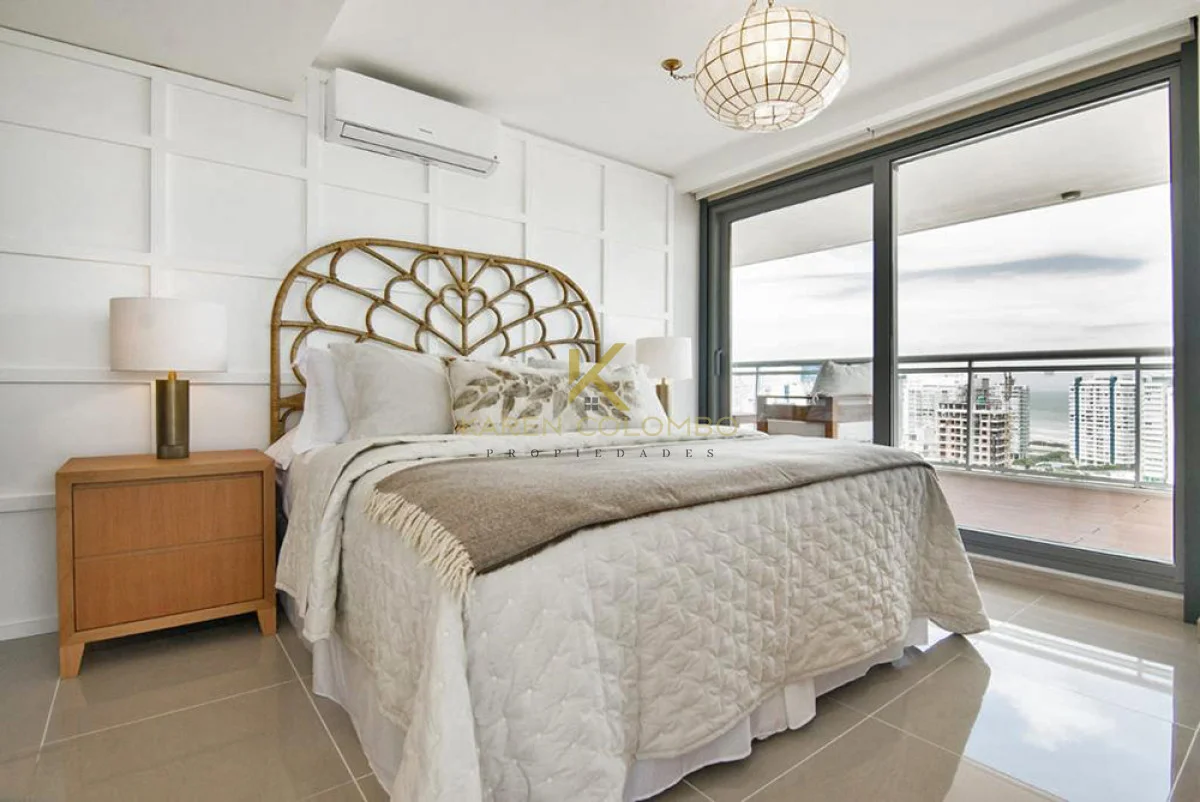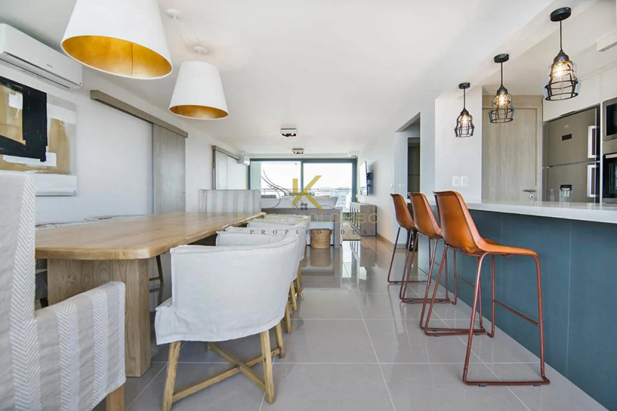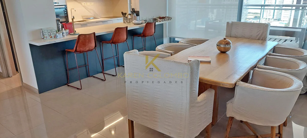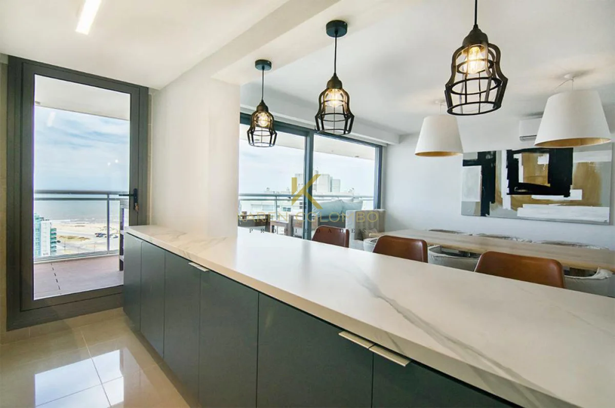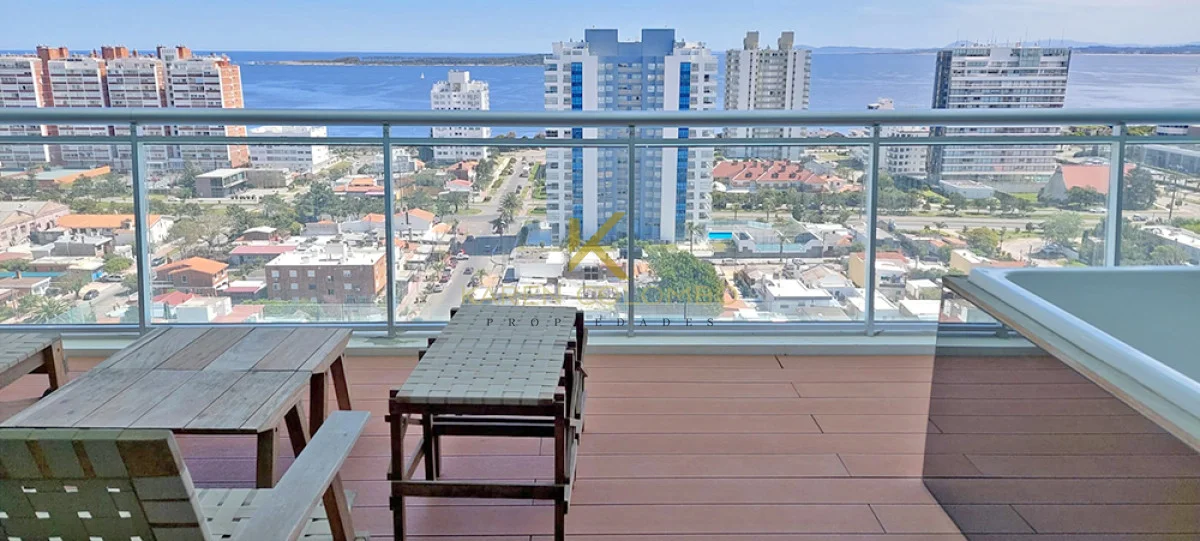 Espectacular Apartamento en Piso 17 con doble Terraza hacia Brava y Mansa. Consta de 3 Dormitorios con muy buena Vista y 3 Baños. Dormitorio Principal en Suite con salida a la Terraza. Comedor diario muy luminoso, Cocina totalmente equipada con Barra integrada, y Living amplio con salida a Terraza. Cuenta con Jacuzzi y Parrillero propios.
