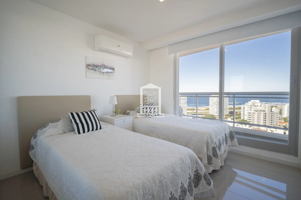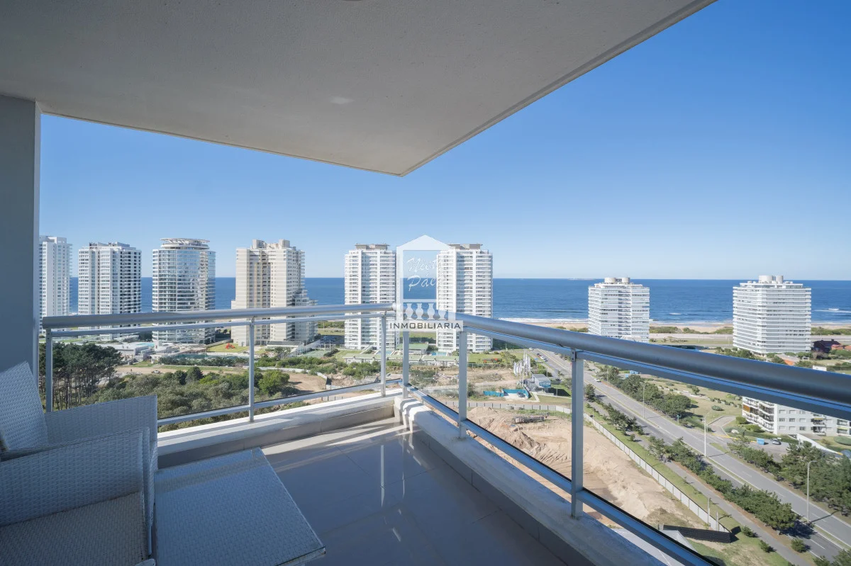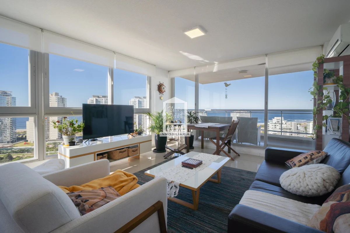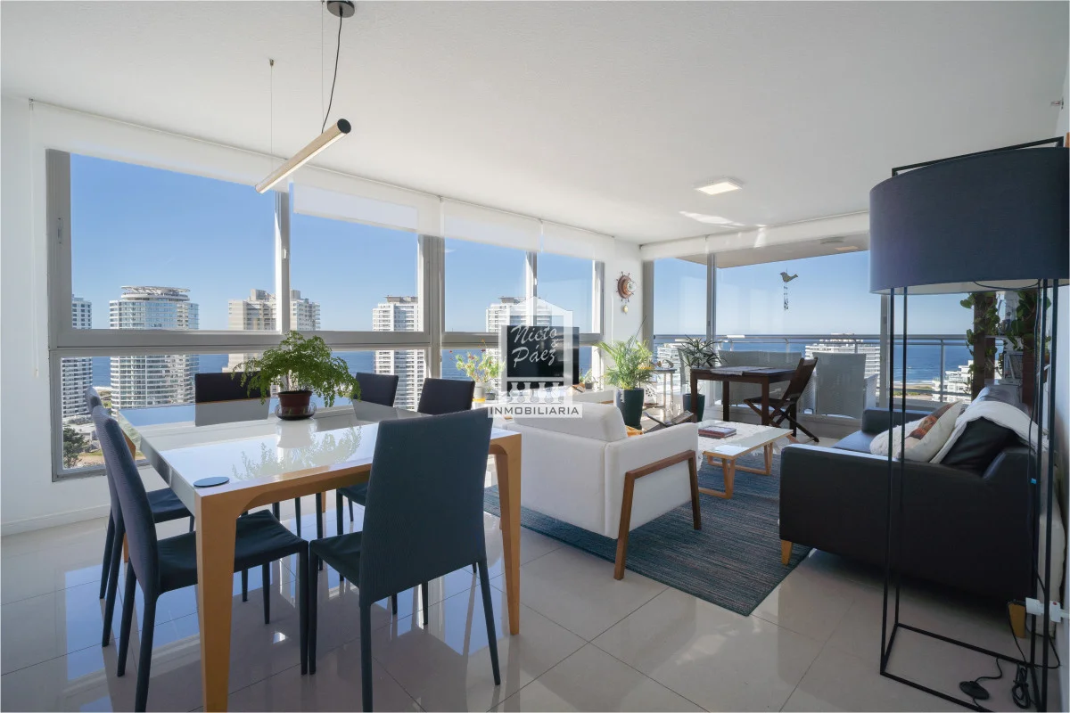 Unidad esquina, luminosa y con grandes paños de vidrio que maximizan una vista 180° al Atlántico y al entorno de pinos. Planta funcional: social al frente con acceso a terraza amplia; cocina definida con mesadas generosas y lavadero independiente; dos suites cómodas, la principal con vestidor. Terminaciones cuidadas y climatización completa: losa radiante por sectores y equipos de aire acondicionado en cada ambiente. Ideal para vivir todo el año o disfrutar en temporada, a pasos de la playa y de los servicios de la zona.
