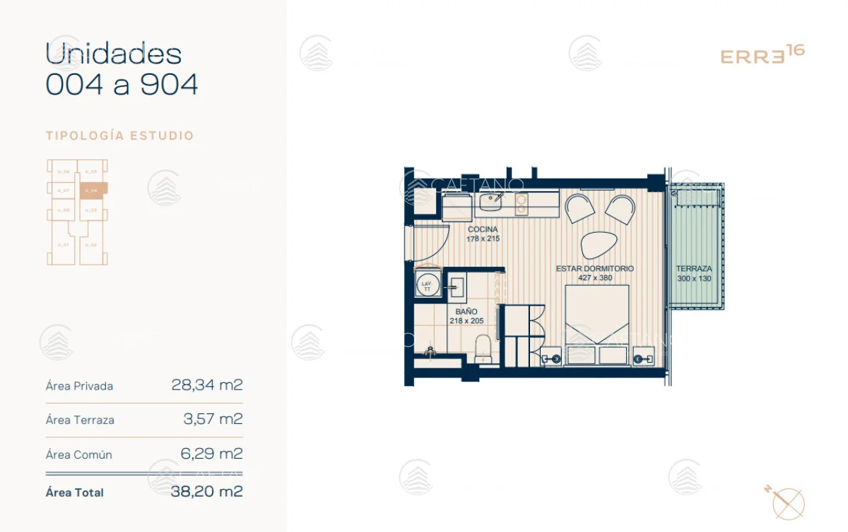 Edificio de 68 apartamentos con unidades monoambiente, de 1 y 2 dormitorios, diseñados con espacios modernos, luminosos y funcionales. Todos los apartamentos cuentan con terraza cubierta, ventanas de piso a cielo, cocina integrada y estacionamiento propio.