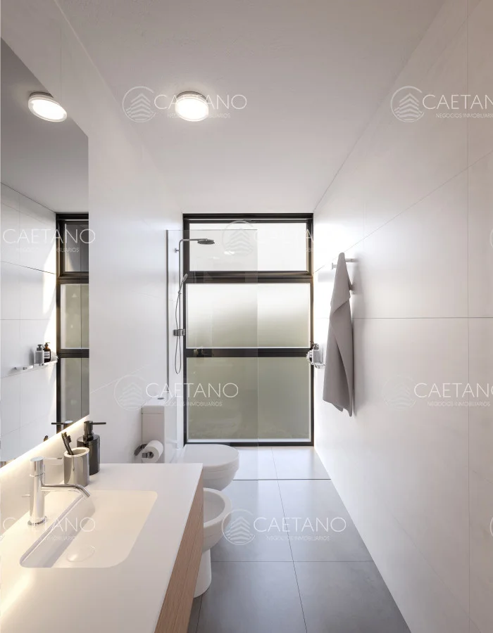 Los apartamentos se destacan por sus excelentes terminaciones, con vidrios DVH, cocinas equipadas con anafe y horno, mesadas de cuarzo o granito, y preinstalación de aire acondicionado por ambiente.