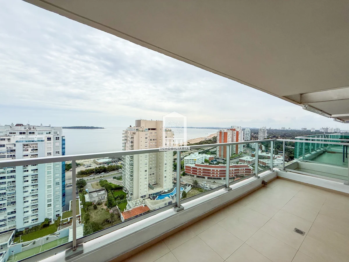 Apartamento en el edificio Gala Tower, piso alto casi penthouse con vista directa a la Mansa, Península y Punta Ballena, living comedor, 2 dormitorios- 1 en suite con hermosa vista al mar- 2 baños, cocina definida, terraza lavadero, aire acondicionado en todos los ambientes, garaje, servicio de mucama diario, servicio de playa, piscina climatizada, solarium, cancha de tenis, cancha mini de fútbol, área de juegos infantiles, jaula de mini golf, sala de cine, jacuzzi, parrilleros, salón de usos múltiples, recepción las 24hs. Para no perderlo!