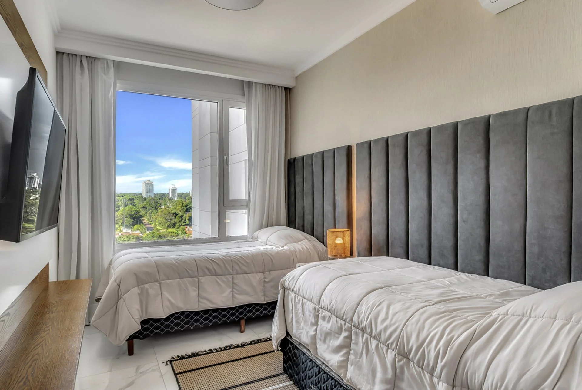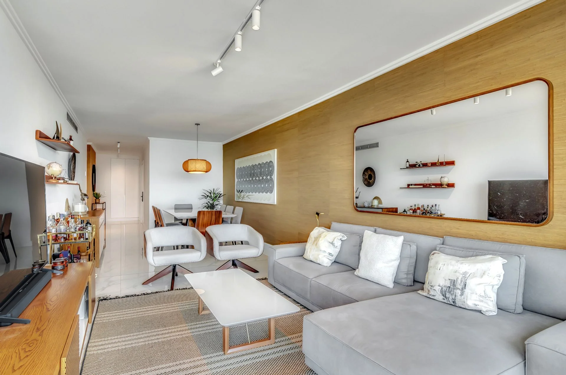 Posee living comedor con salida a amplia terraza con vista al mar, cocina definida con lavadero independiente, tres dormitorios, tres baños completos y un toilette. Todos los ambientes cuentan con buena iluminación natural. Dispone de calefacción por losa radiante y aire acondicionado central, lo que permite su uso durante todo el año.