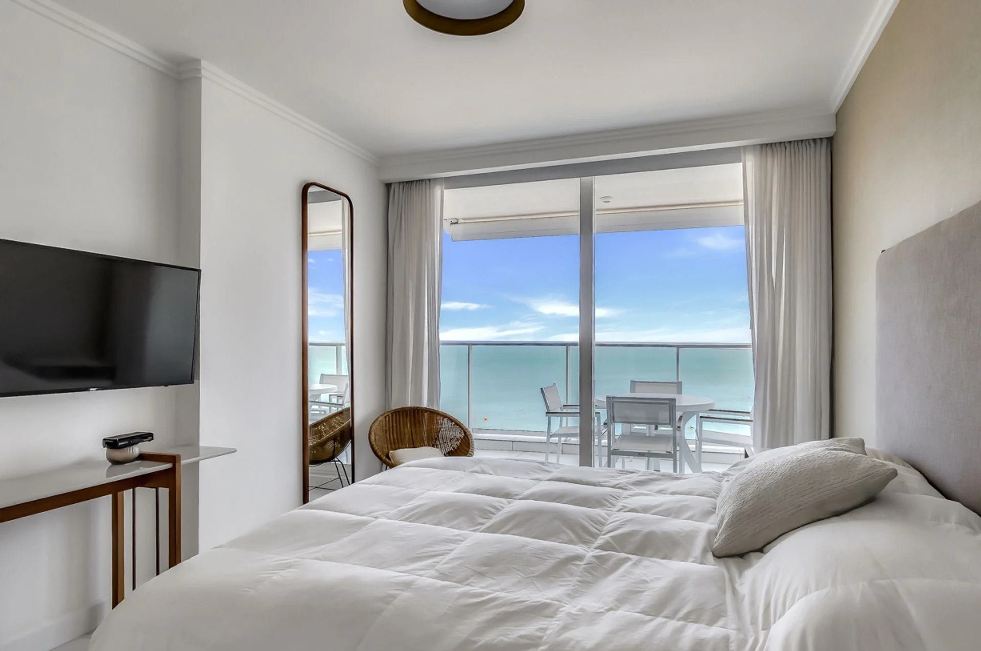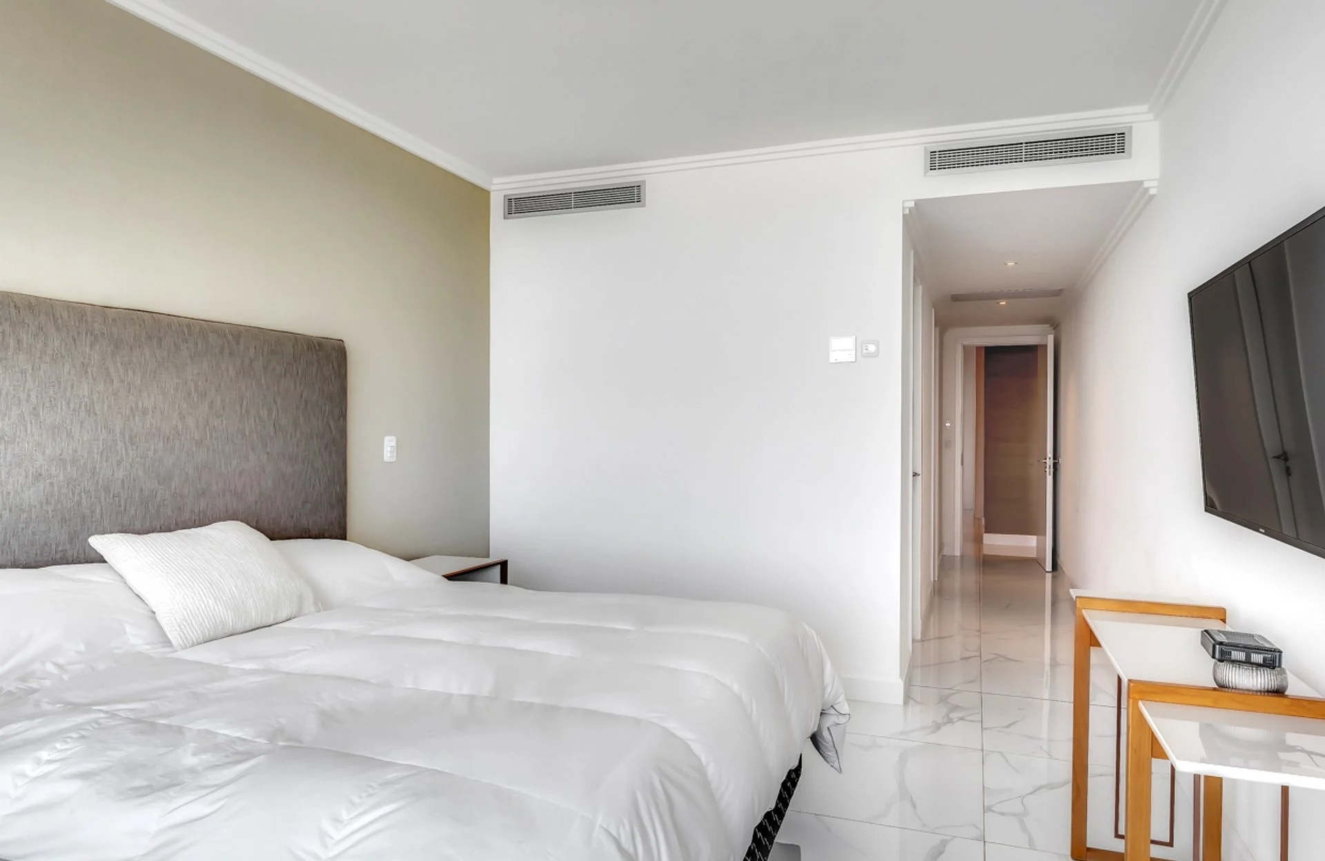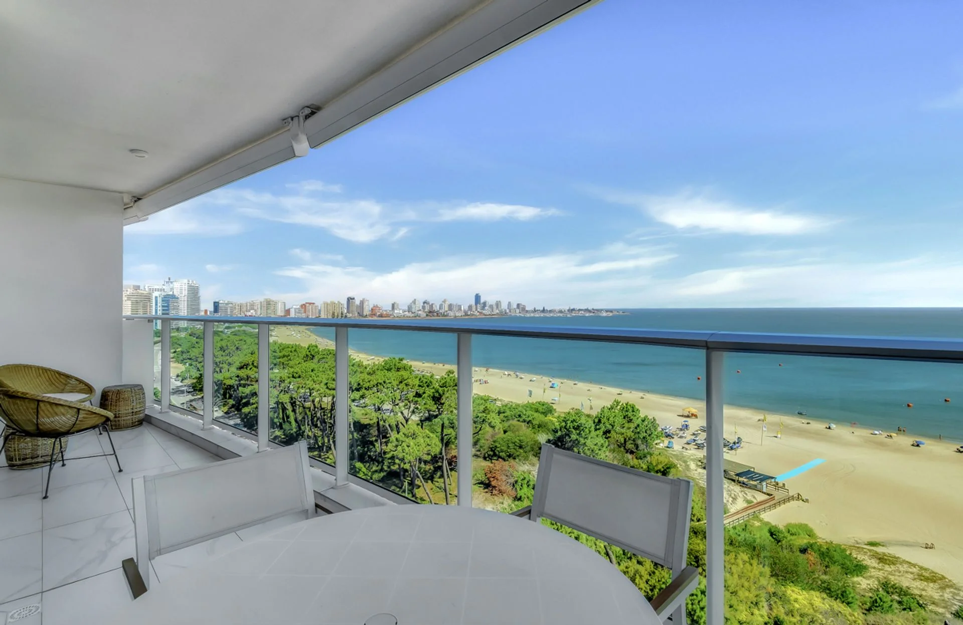 Apartamento de alta gama en venta en primera línea frente al mar de Playa Mansa, Punta del Este. Ubicado en un piso alto con vista totalmente despejada.