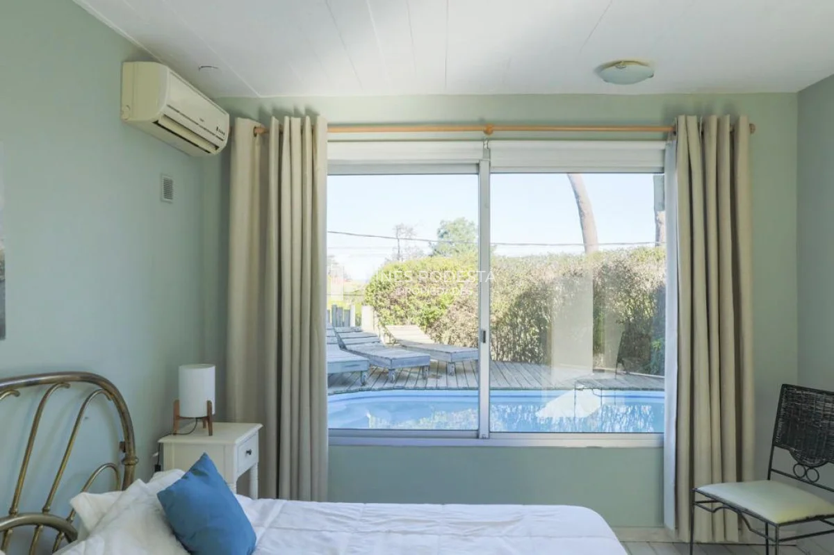 Montoya, a 2 cuadras del mar, moderna propiedad en 2 plantas, amplio living-comedor, toilette, 5 dormitorios, 1 suite, cuarto de servicio con baño, piscina, parrillero, 10 plazas.