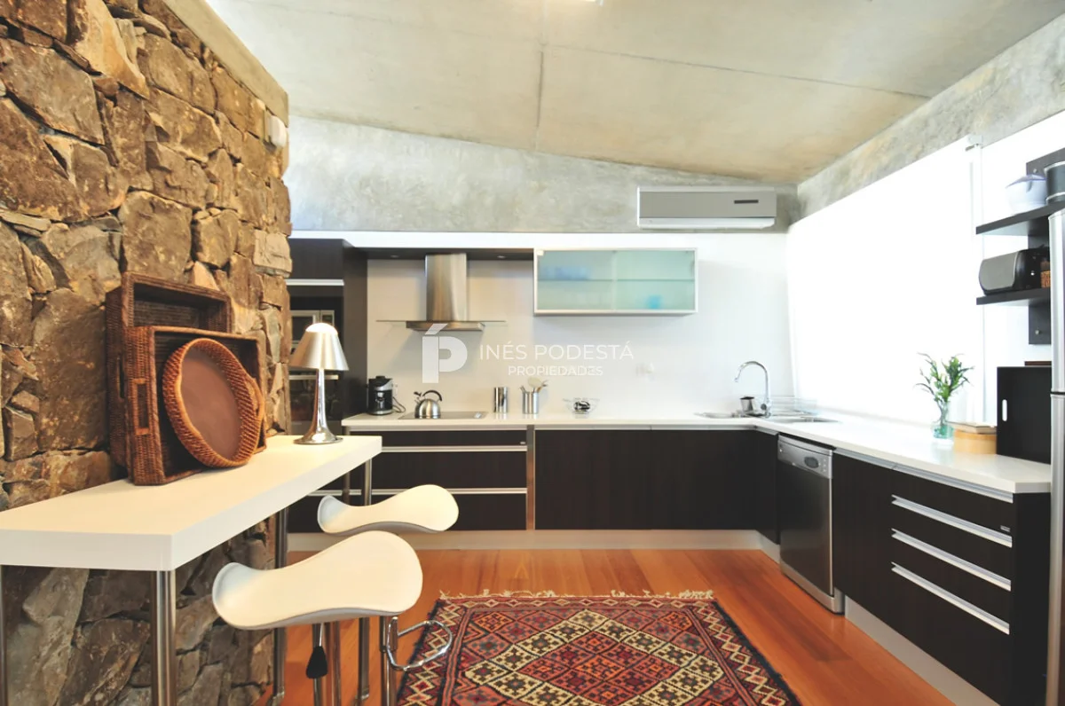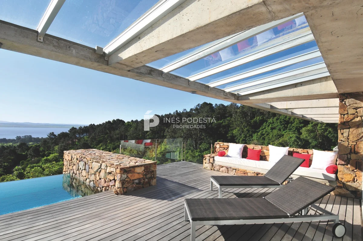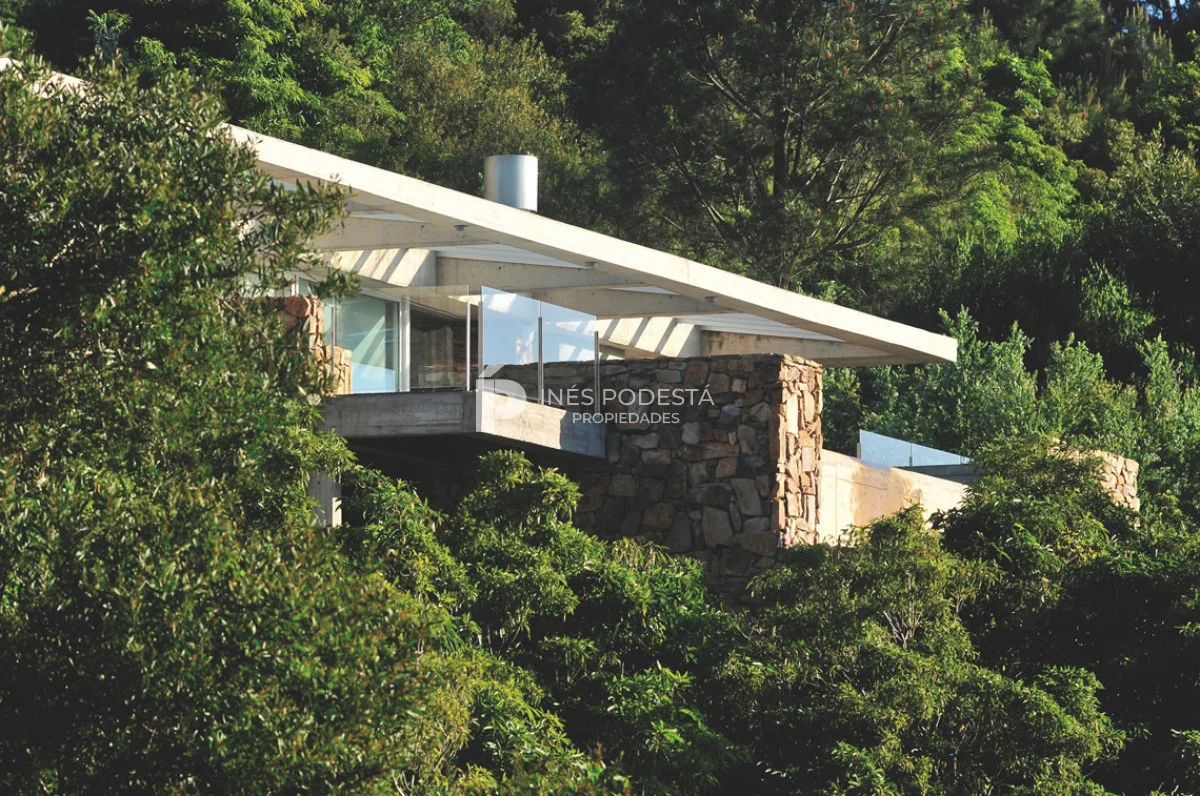 Una casa de características excepcionales como si estuviese sostenida en las rocas, increíble construcción, única, sobre un lote en forma de barranco, con 3472 m2 de terreno y 510 m2 edificados. La casa está realizada en estructuras de hormigón armado y piedra, contando en su totalidad con una espectacular vista hacia la Laguna del Sauce.