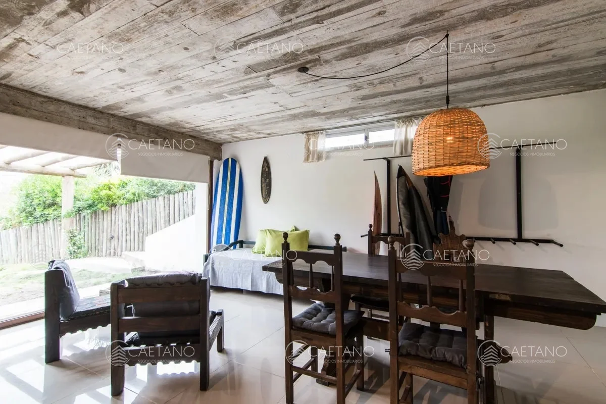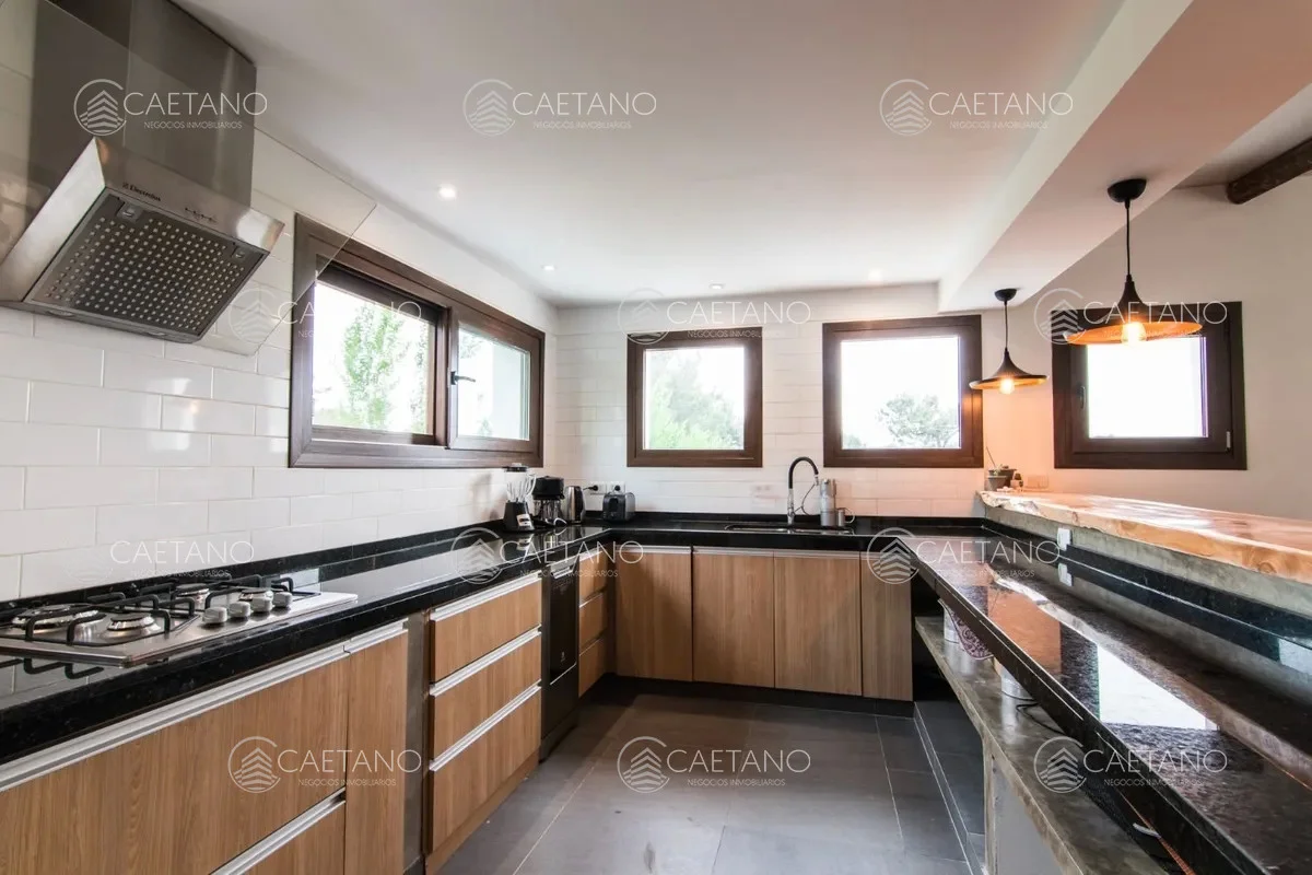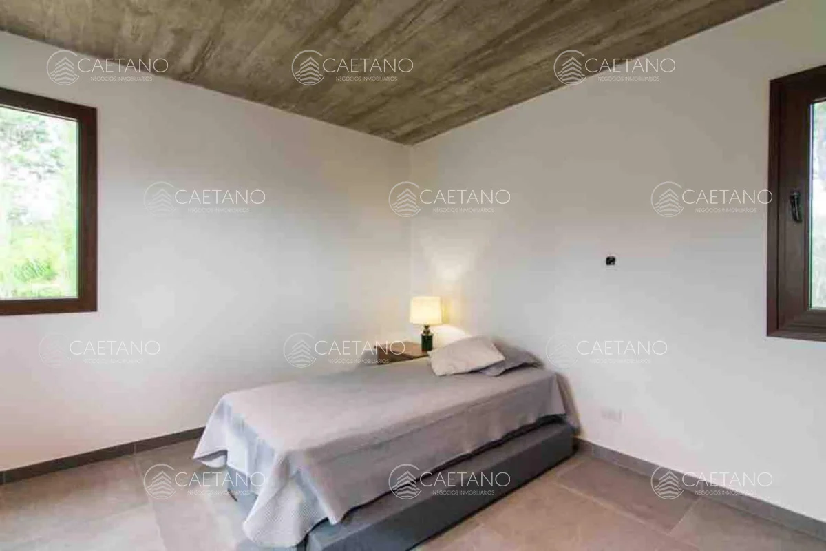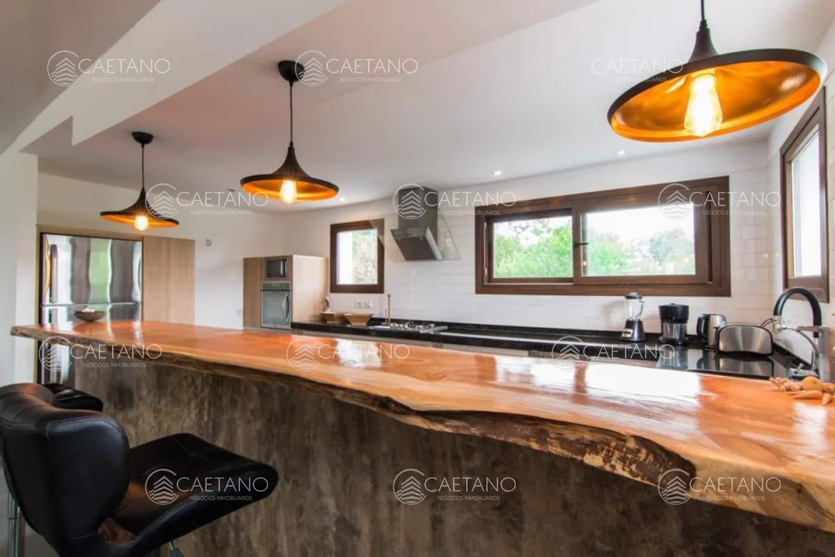 Casa moderna de dos plantas en zona alta de la barra, barrio sumamente tranquilo y seguro! Cuentra con 3 dormitorios y 3 baños. En planta baja 2 dormitoios con 5 camas en total. 2 baños en planta baja, completos y modernos. Dormitorio principal en segunda planta con balcon y baño en suite, moderno. Un amplio living comedor con cocina integrada totalmente equipada. Estufa a leña en estar. Amplio patio rodeado de verde. Parrillero con baño. Consulte con nuestros asesores! Referencia Interna : Tera-2502