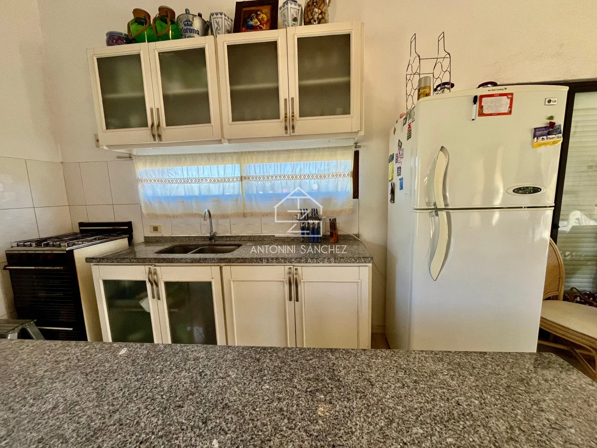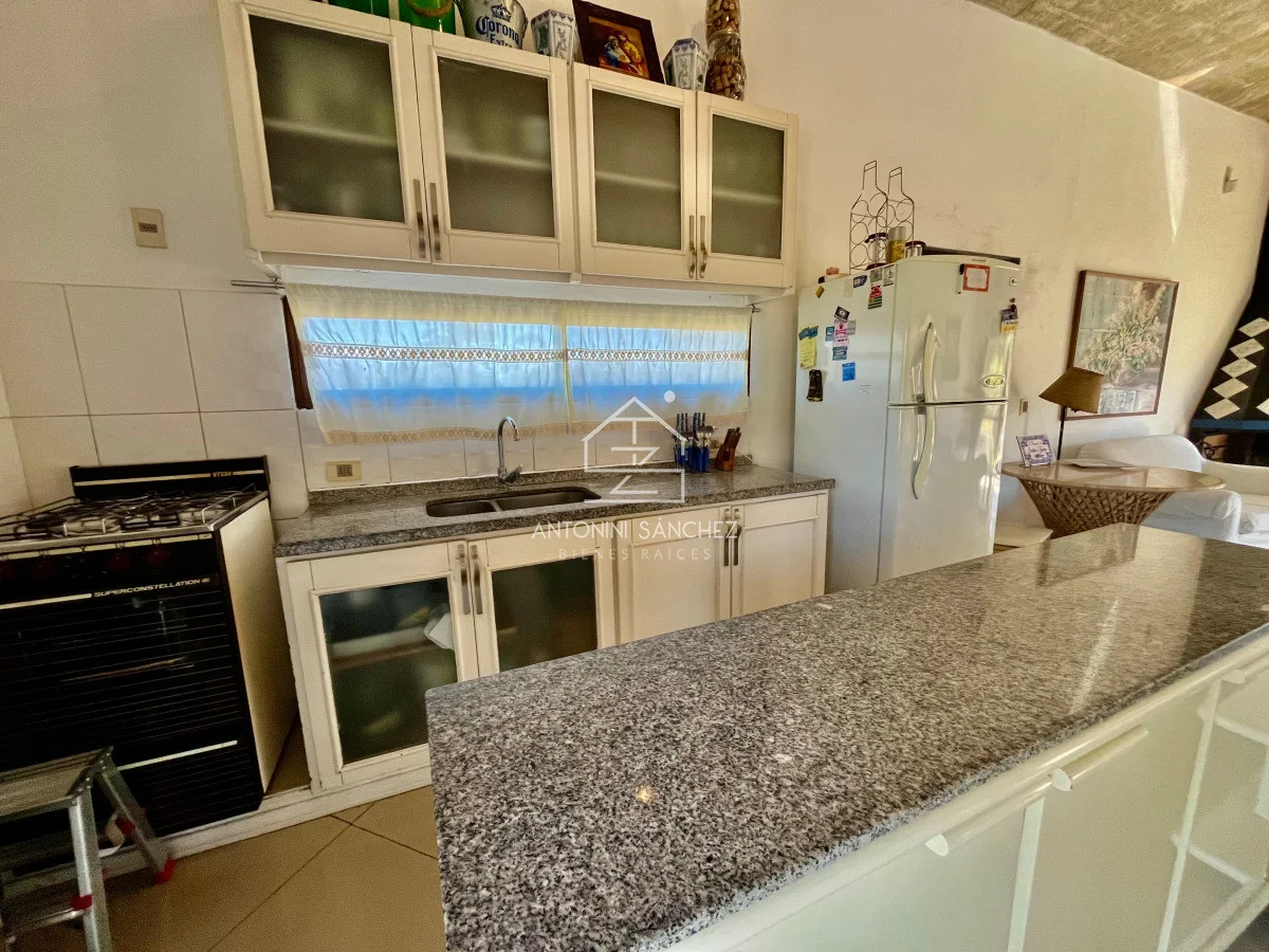 Cocina con isla, integrada al living-comedor con gran entrada de luz natural, espectacular estufa a leña, amplios ventanales con cortinas electrica, aire acondiocionado y ventilador de techo.