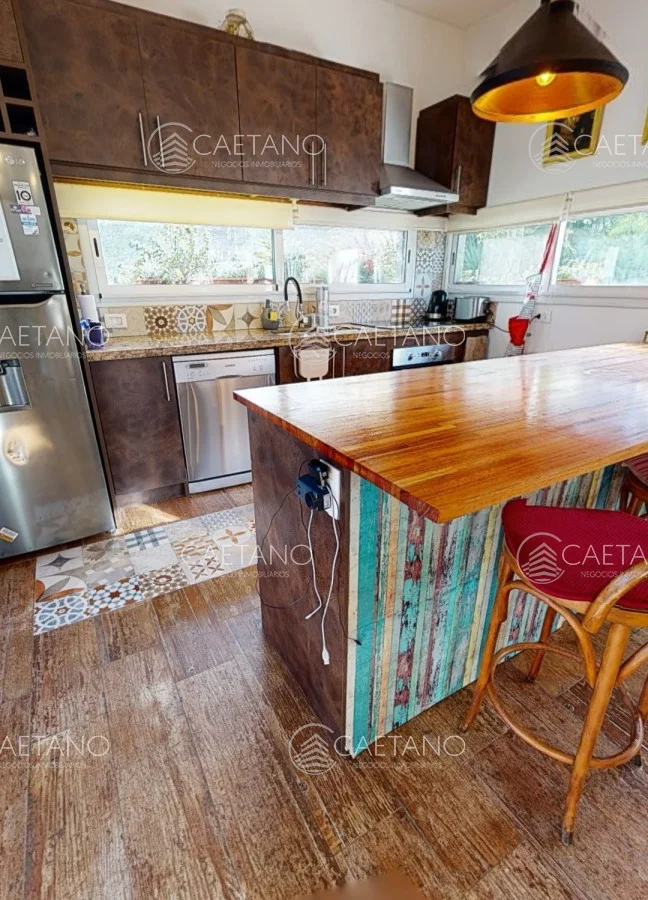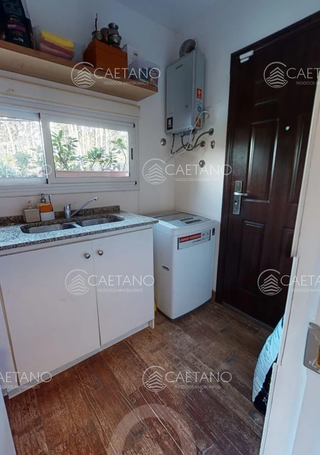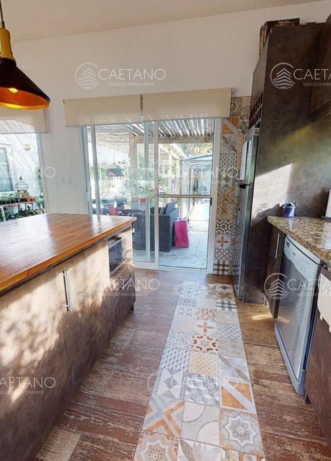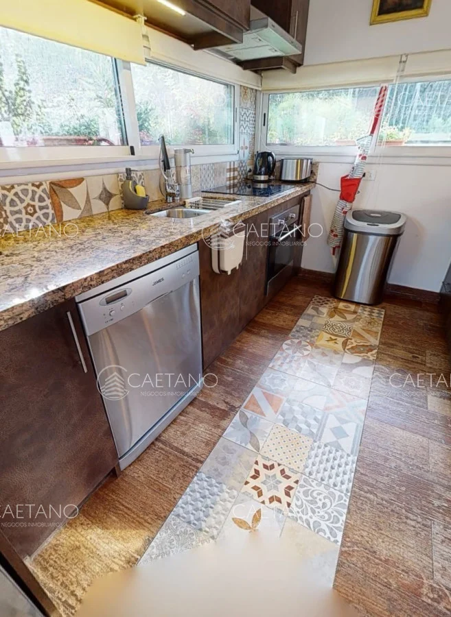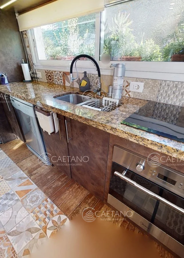 Living comedor con estufa de alto rendimiento y cocina integrada, acceso a una amplia galería techada con parrillero (cuenta con cerramiento y se puede abrir completo durante el verano para que quede abierto). Patio cerrado comunicado con lavadero y salida exterior.