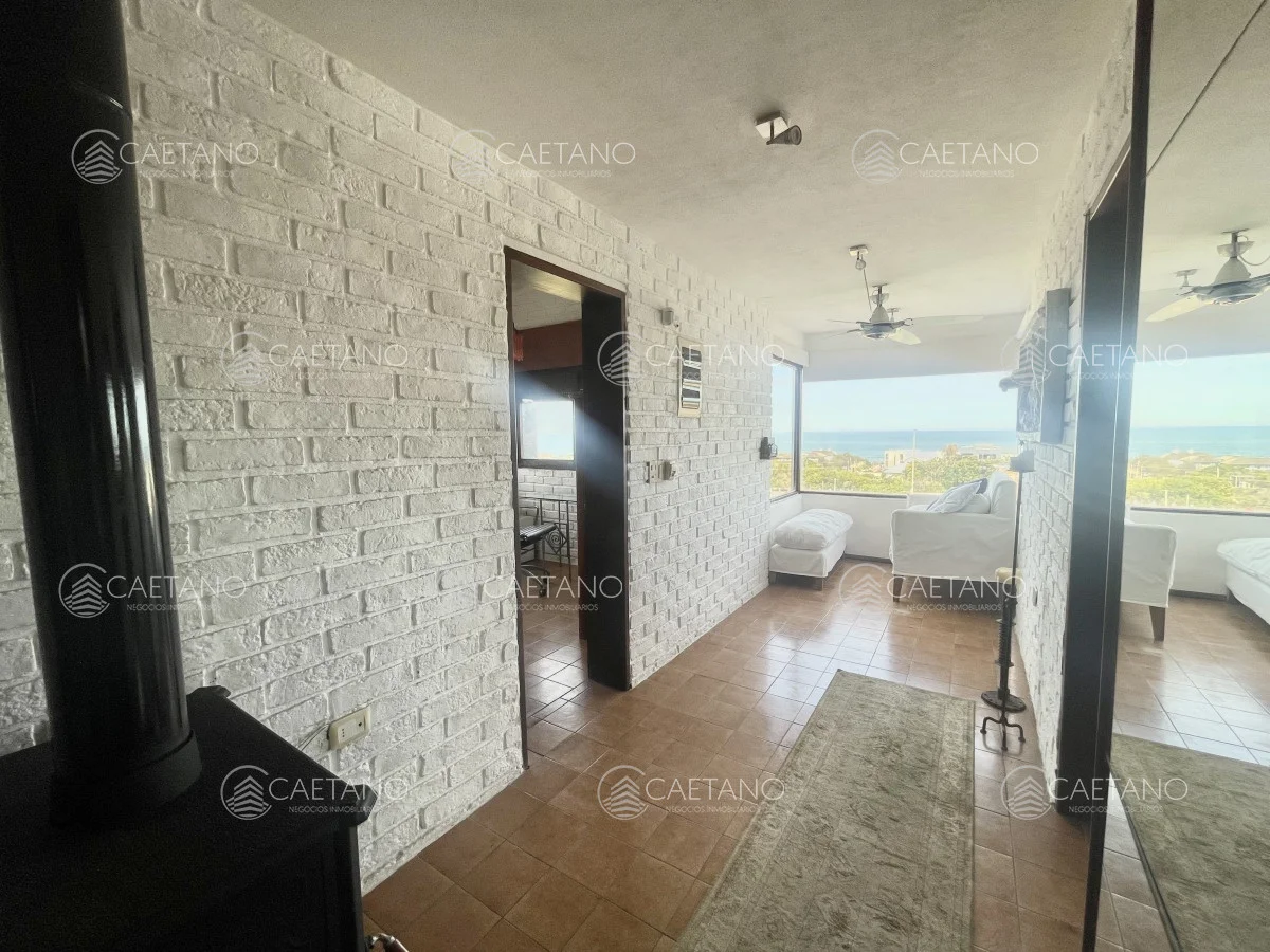 En planta alta encontramos un pasillo de distribución a tres habitaciones. Este con estufa a leña de alto rendimiento que calefacciona toda la parte superior, al final de este tenemos un espacio de relax con vista al mar.
