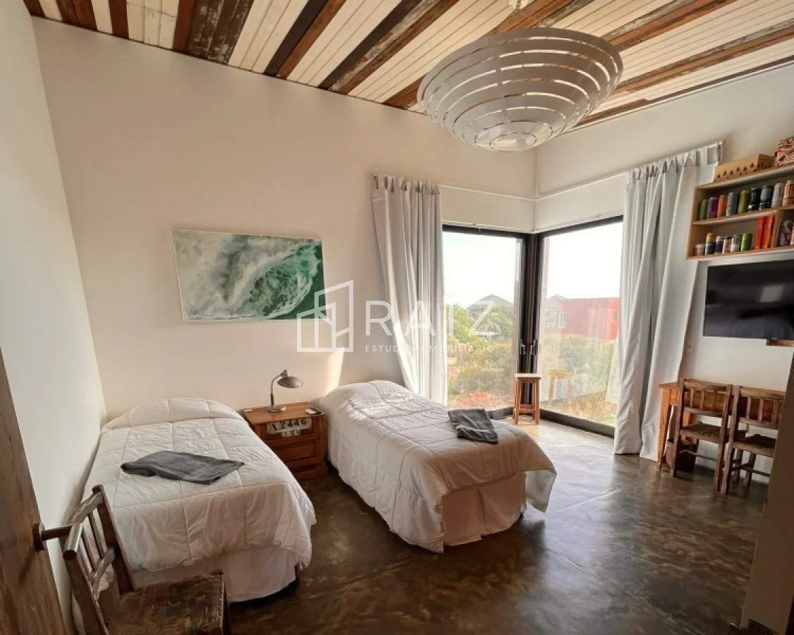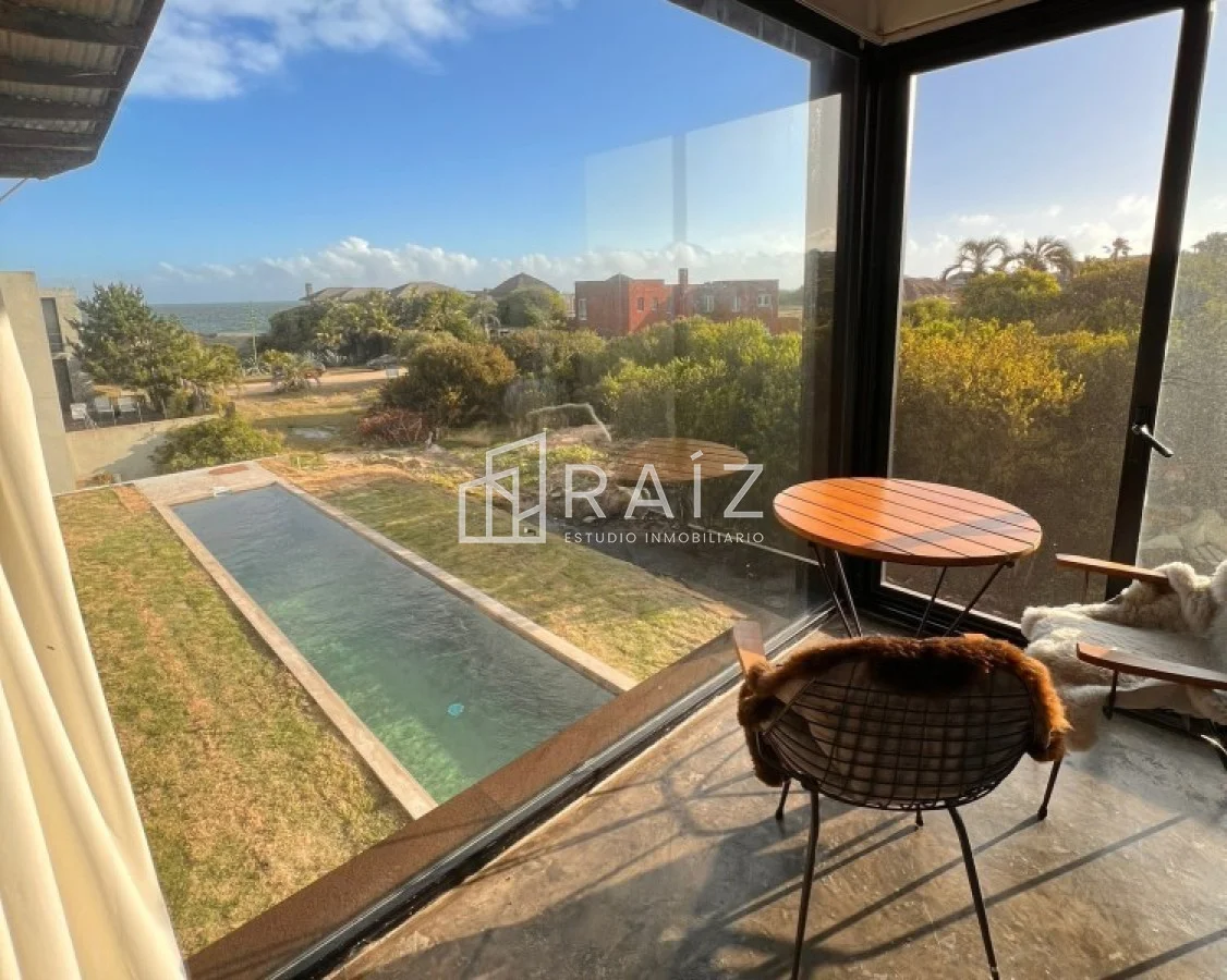 Maravillosa casa diseñada por el arquitecto Diego Montero realizada en Acero Corten en su exterior. Lote ubicado a pasos de la Playa. Gran casa muy luminosa de amplias dimensiones desarrollada en dos plantas, cuenta cinco dormitorios en suite màs toilette de recepcion. Cocina moderna integrada, lavadero, dependencia de servicio con baño, living comedor, terraza. . Garage para 2 vehìculos. Esta equipada con aire acondicionado en los ambientes. Posee Jardín con parrillero. Hermoso entorno a pasos del mar. Consulte con nuestros asesores 4248 6427 / 095 002 383 [email protected] destinopunta.com Referencia Interna : Tera-11271