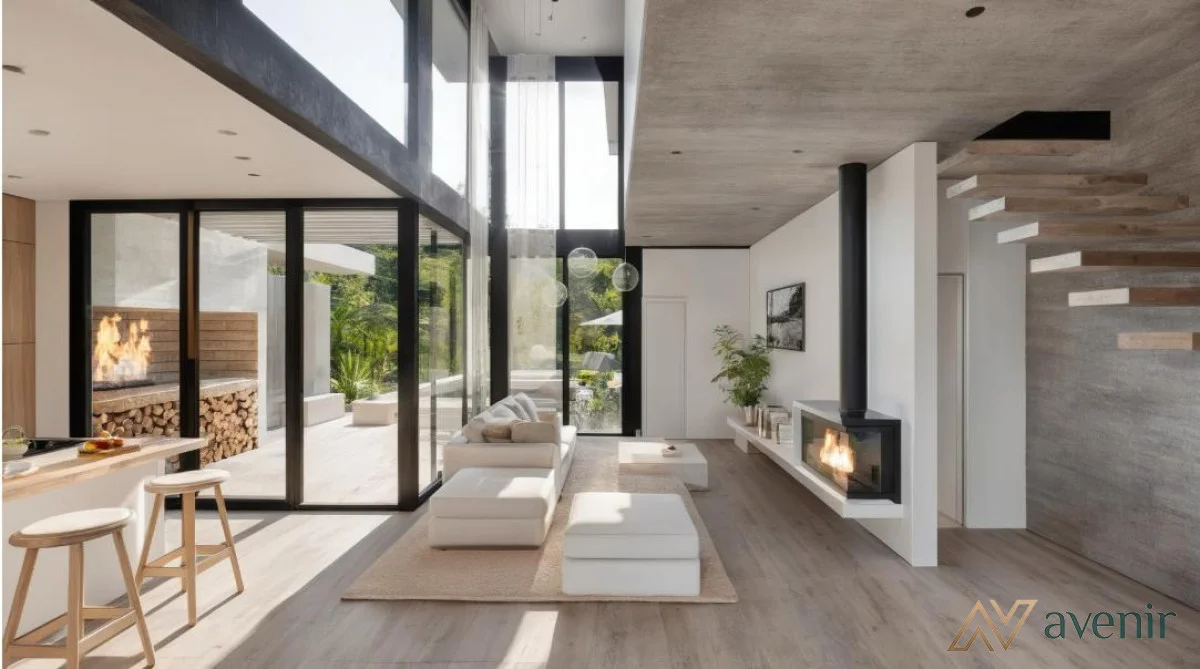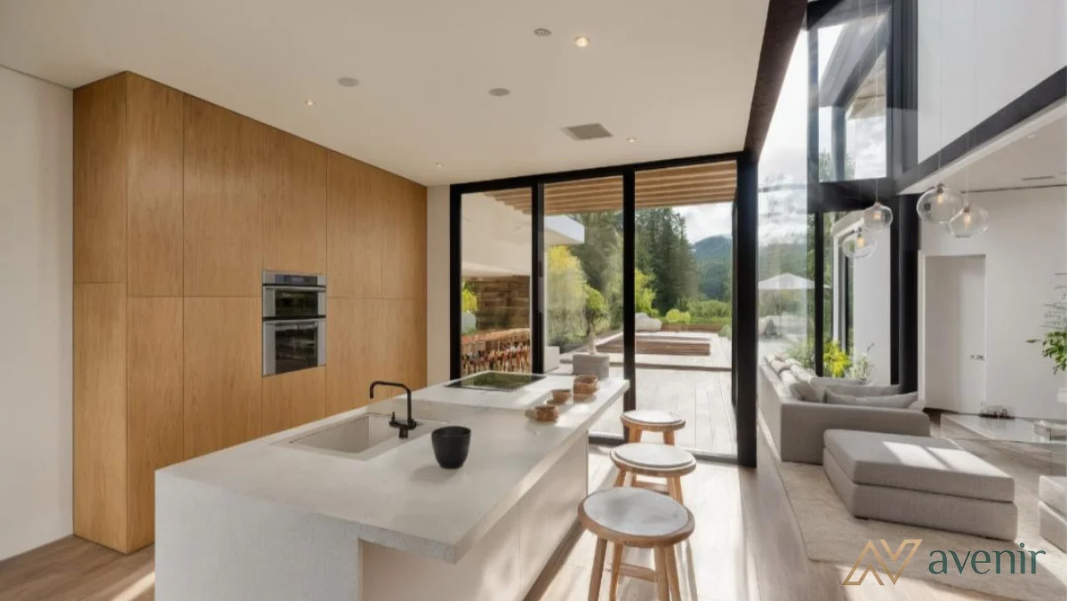 Construcción de muros y cubiertas en hormigón armado, con aislación térmica, garantizando eficiencia energética y confort durante todo el año. Al ingresar amplios ventanales que otorgan excelente iluminación natural y una fluida conexión visual y espacial con el exterior y la naturaleza.