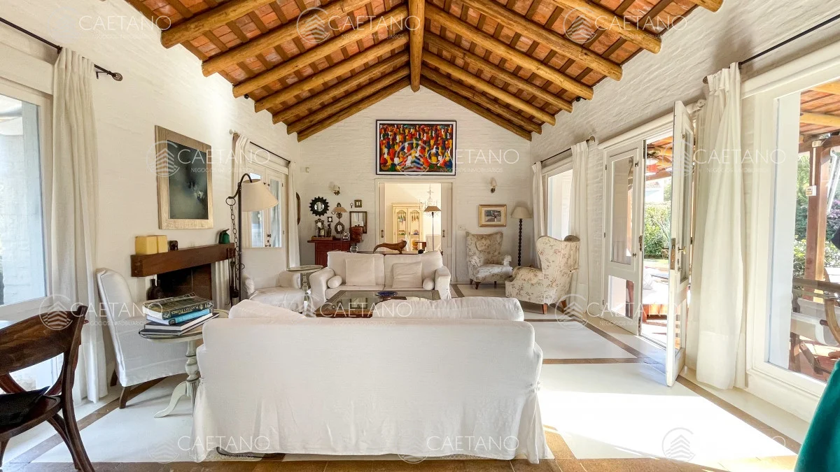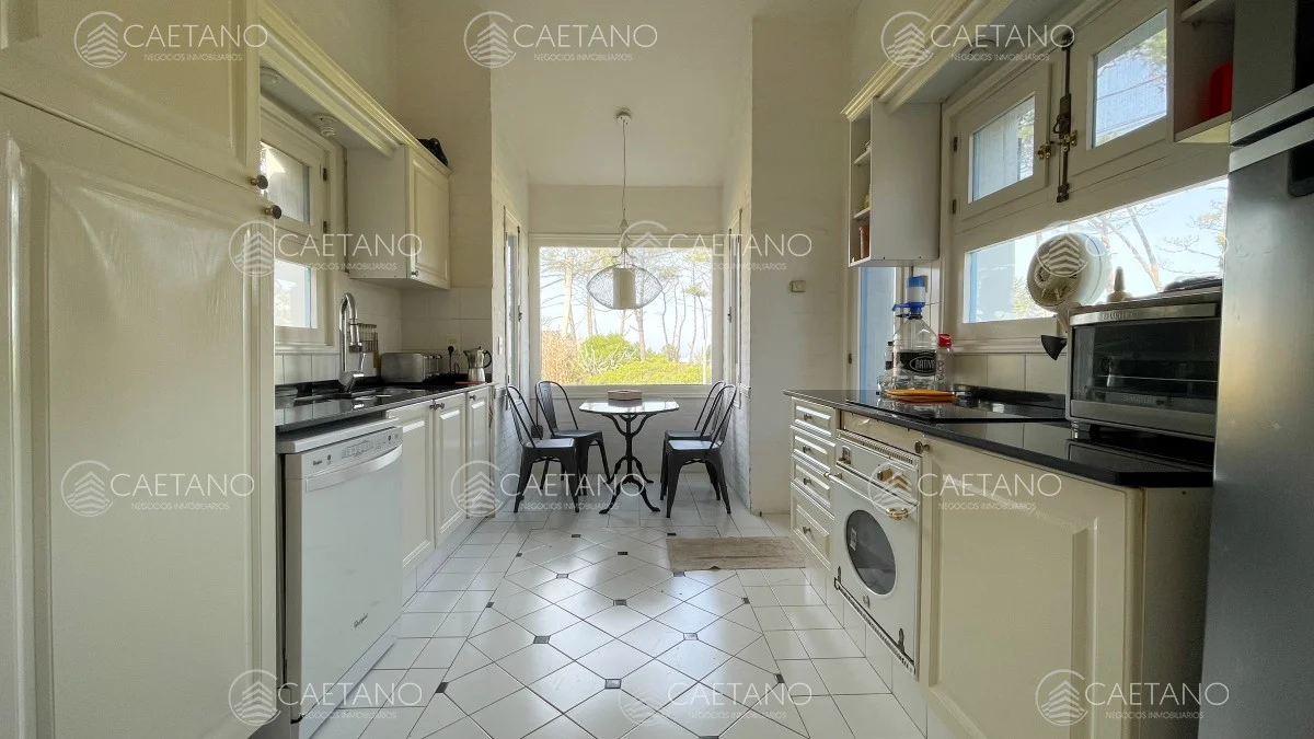 Recibidor que nos sirve como área de distribución, a la izquierda nos ofrece la zona social de la casa. con un amplio living con grandes ventanales que nos dejan ver tanto el patio como el mar y estufa a leña, enseguida y dividido por amplias puertas francesas llegamos a un comedor de muy buen tamaño con capacidad para 8 comensales. Cocina definida con comedor diario. A la derecha del recibidor nos ofrece la zona privada de la casa, en planta baja, tres amplios dormitorios y dos baños completos. En segundo piso gran master suite, con vista al mar balcón y vestidor.