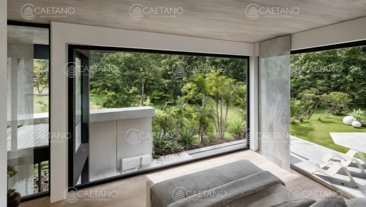 Amplios ventanales que otorgan excelente iluminación natural y conexión con el entorno verde.