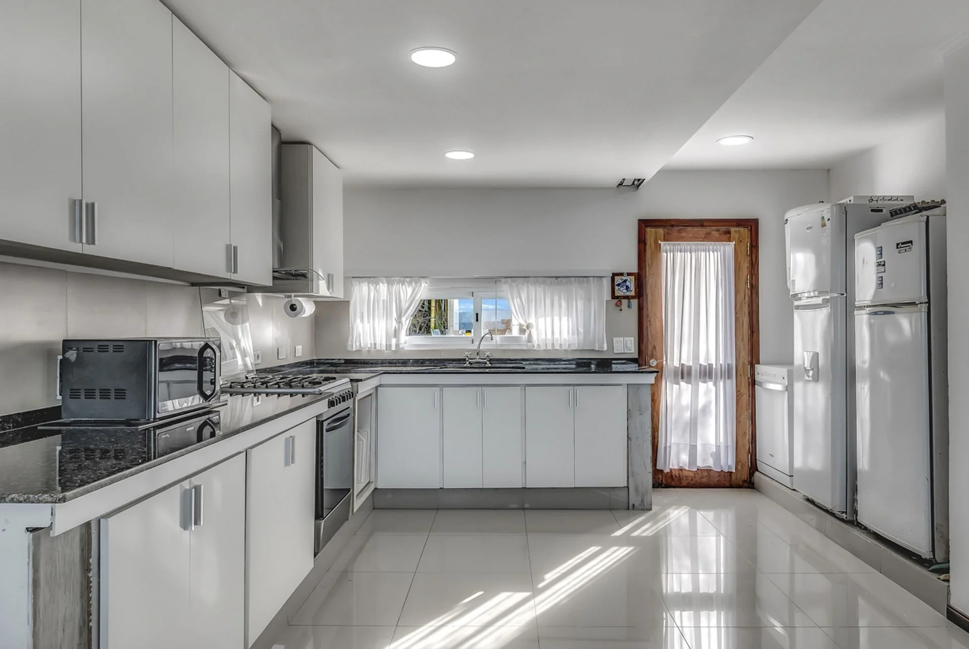 La propiedad se desarrolla en una sola planta, con espacios amplios, cómodos y bien distribuidos. Cuenta con un luminoso living-comedor con grandes ventanales que integran el interior con el entorno y brindan excelente luz natural. La cocina es integrada, amplia y funcional. Toilet