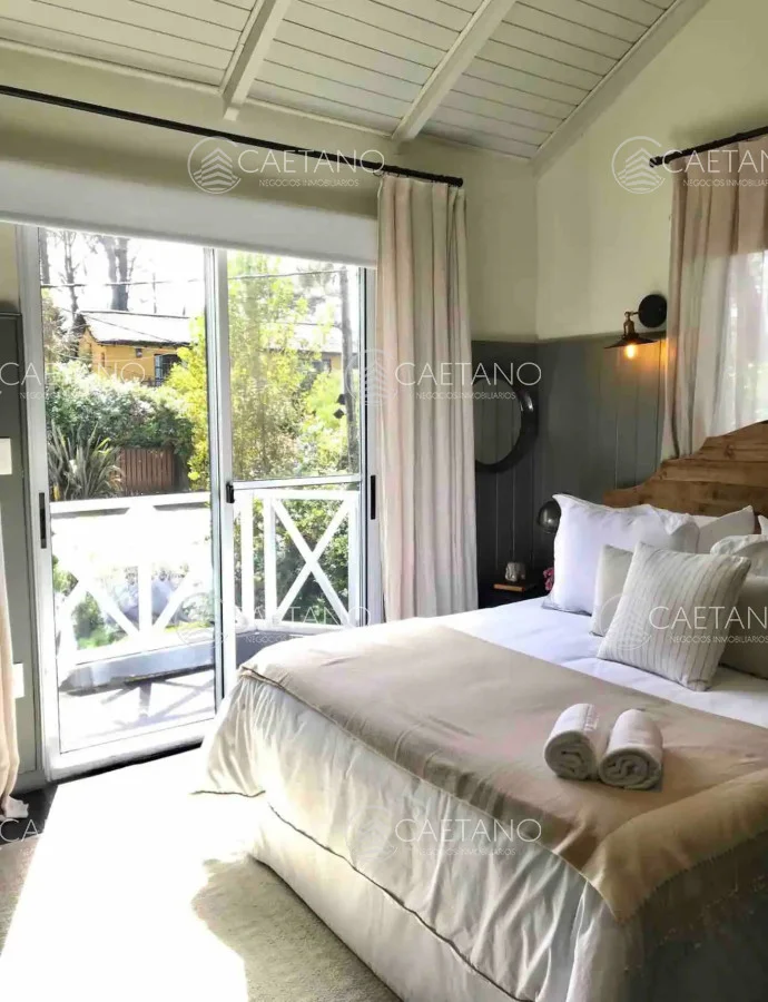 La mejor ubicación de La Barra. En el barrio Montoya. A 350 metros del mar. Se puede ir caminando a Montoya beach o el parador Bagatelle. Son 4 habitaciones en suite, equipadas con todos los detalles: aire acondicionado, frigo bar, caja fuerte, en cada una de las habitaciones. En planta baja está el living comedor, la cocina y la biblioteca. Una casa con todos los detalles pensados. Hay bicicletas, sillas y sombrillas para la playa. Cada una de las 4 habitaciones cuenta con su propio baño, frigobar, aire acondicionado, caja fuerte y tv con direct Tv En planta baja está el living comedor, la cocina, y la biblioteca. Lo mejor es el gran jardín con parrillero semi cerrado. La casa tiene una casa de huéspedes para 4 personas más que se puede alquilar juntos o separado. Acceso de los huéspedes Además se ofrecen bicicletas, sillas para playa, sombrillas, juegos de caja, cañas de pescar. Referencia Interna : Tera-11845