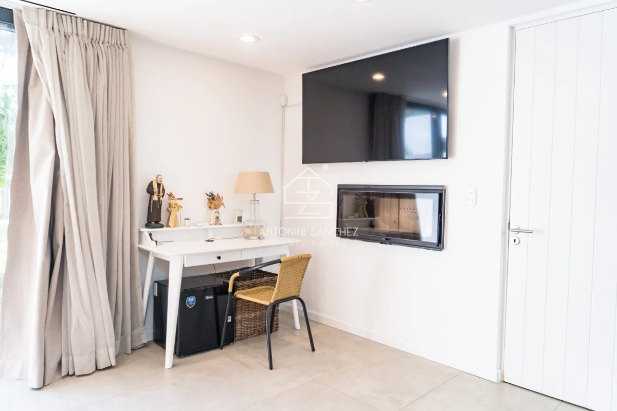 La vivienda cuenta con 4 dormitorios, 3 baños completos (dos de ellos en suite), toilette, dependencia de servicio completa, gran living comedor con estufa a leña, amplia cocina definida, lavadero, barbacoa totalmente equipada para disfrutar con amigos o en familia, cava de vinos, pileta climatizada con jacuzzi, cochera techada para 5 autos, y un gran parque, recientemente reciclada con un gusto exquisito.
