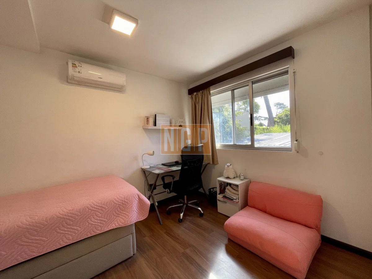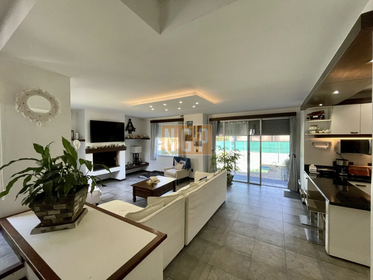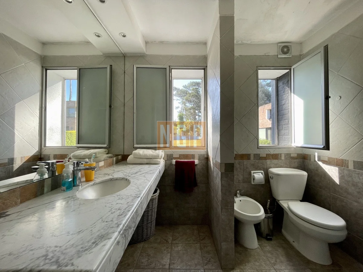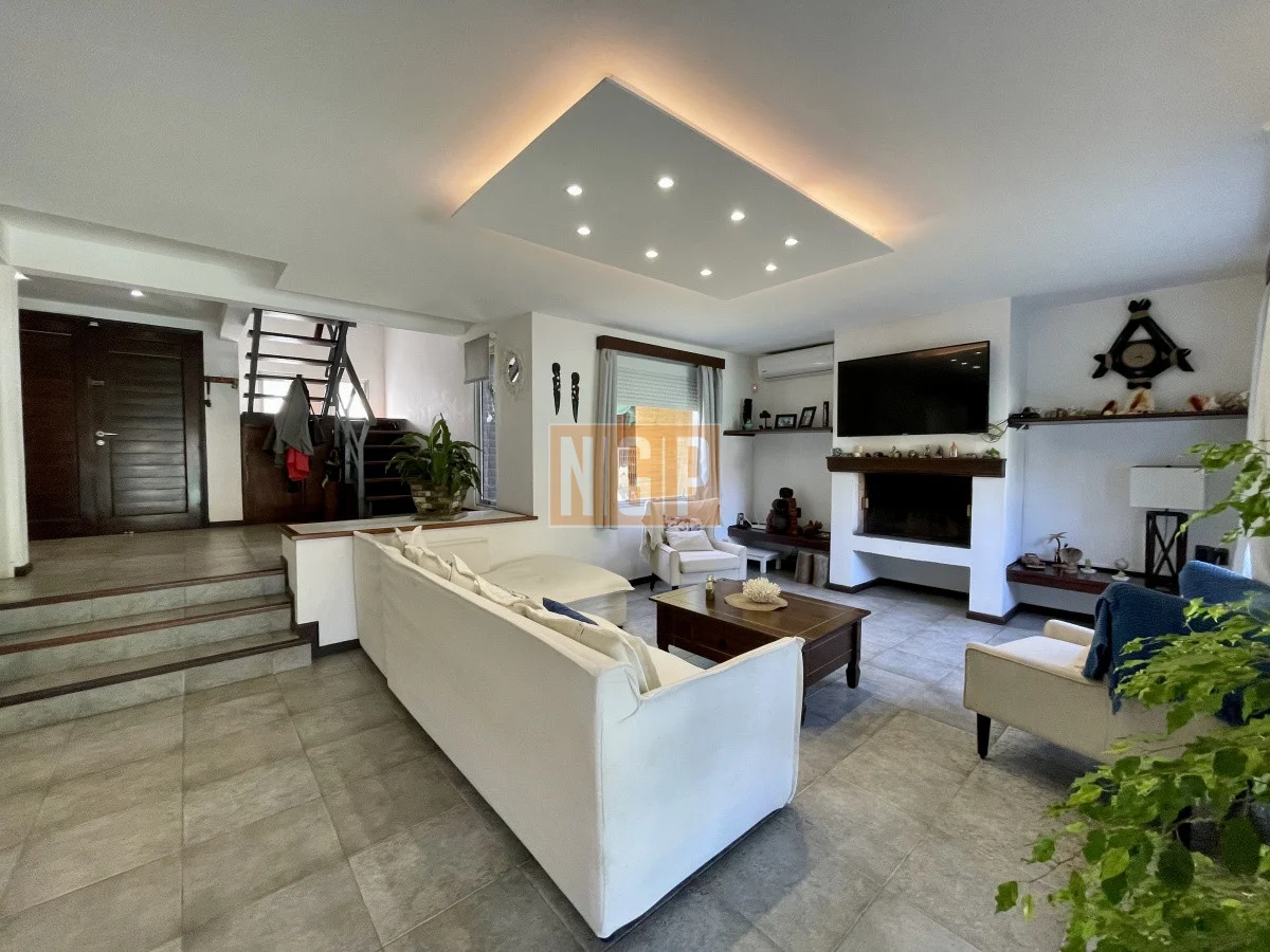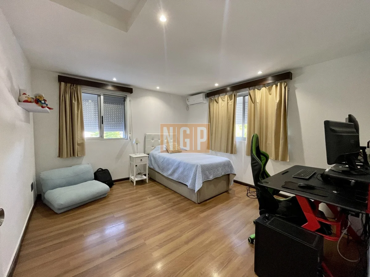 Impresionante casa, 302 metros de construcción, con doble pared de ladrillo y materiales de primera. . La casa cuenta con 4 dormitorios (3 en planta superior y uno de servicio en planta baja); 4 baños (uno en suite del dormitorio principal; otro en suite del dormitorio de servicio; uno social para visitas y otro baño bien grande para uso de los 2 dormitorios adicionales en planta alta). Living amplio, muy iluminado con estufa a leña; cocina americana muy cómoda con horno empotrado eléctrico y anafe a gas. Excelentes mesadas para mayor comodidad. Cuenta con un comedor independiente . La casa, posee un parrillero al cual se puede acceder desde el interior de la misma o desde el parque y la piscina. La propiedad tiene un deck muy bonito para aprovechar el clima especialmente en los meses de verano. La piscina está climatizada con un sistema 100 % solar y sin costos de mantenimiento en absoluto.