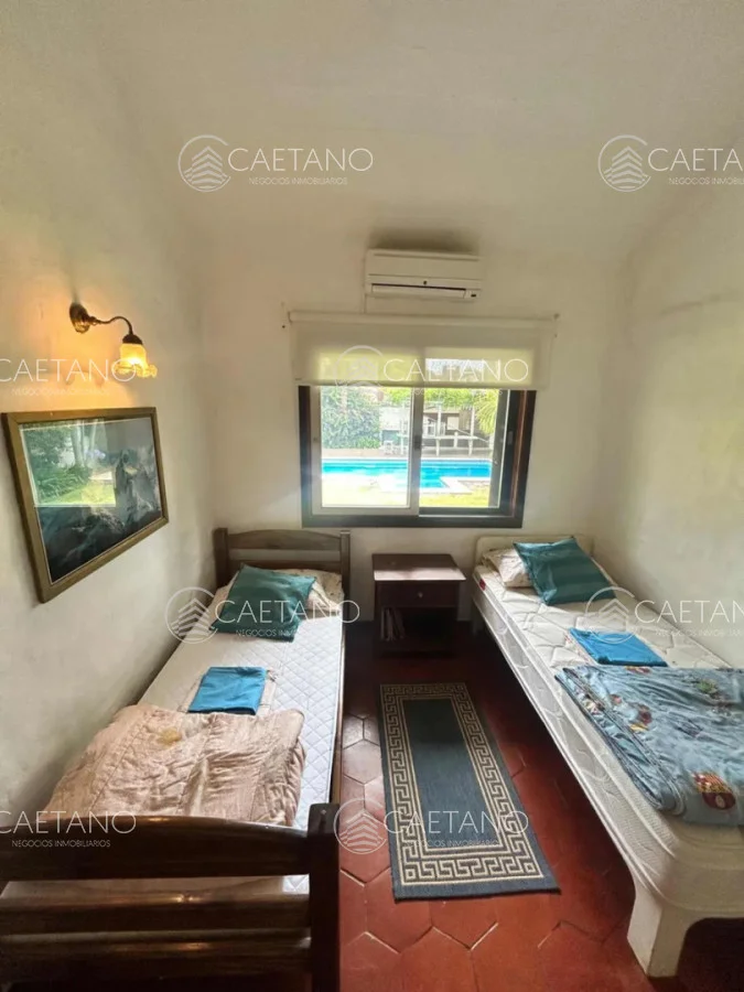 En el fondo del terreno, junto a la piscina, se desarrollan dos dormitorios adicionales con baño completo, brindando independencia y versatilidad, ideales para huéspedes, familia o renta. El área exterior se completa con un parrillero techado y horno de barro, perfectos para disfrutar reuniones al aire libre durante todo el año.