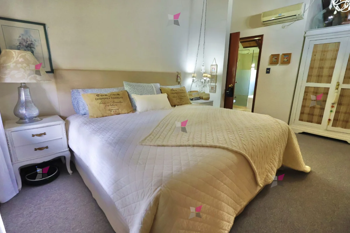 En planta alta: estar íntimo y dormitorio principal con baño en suite.