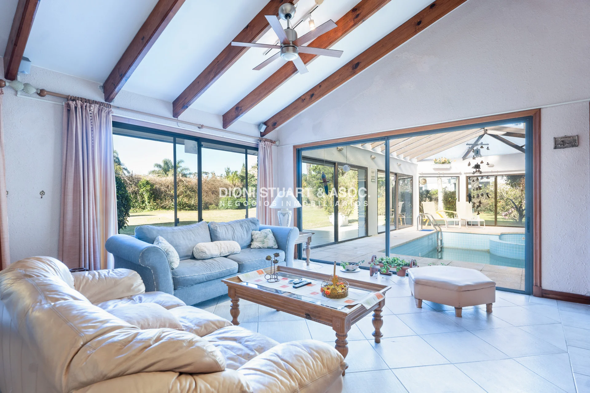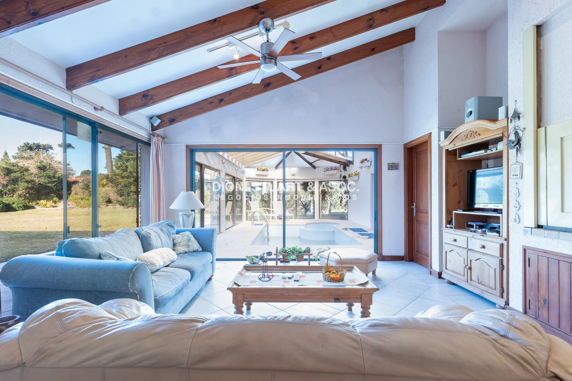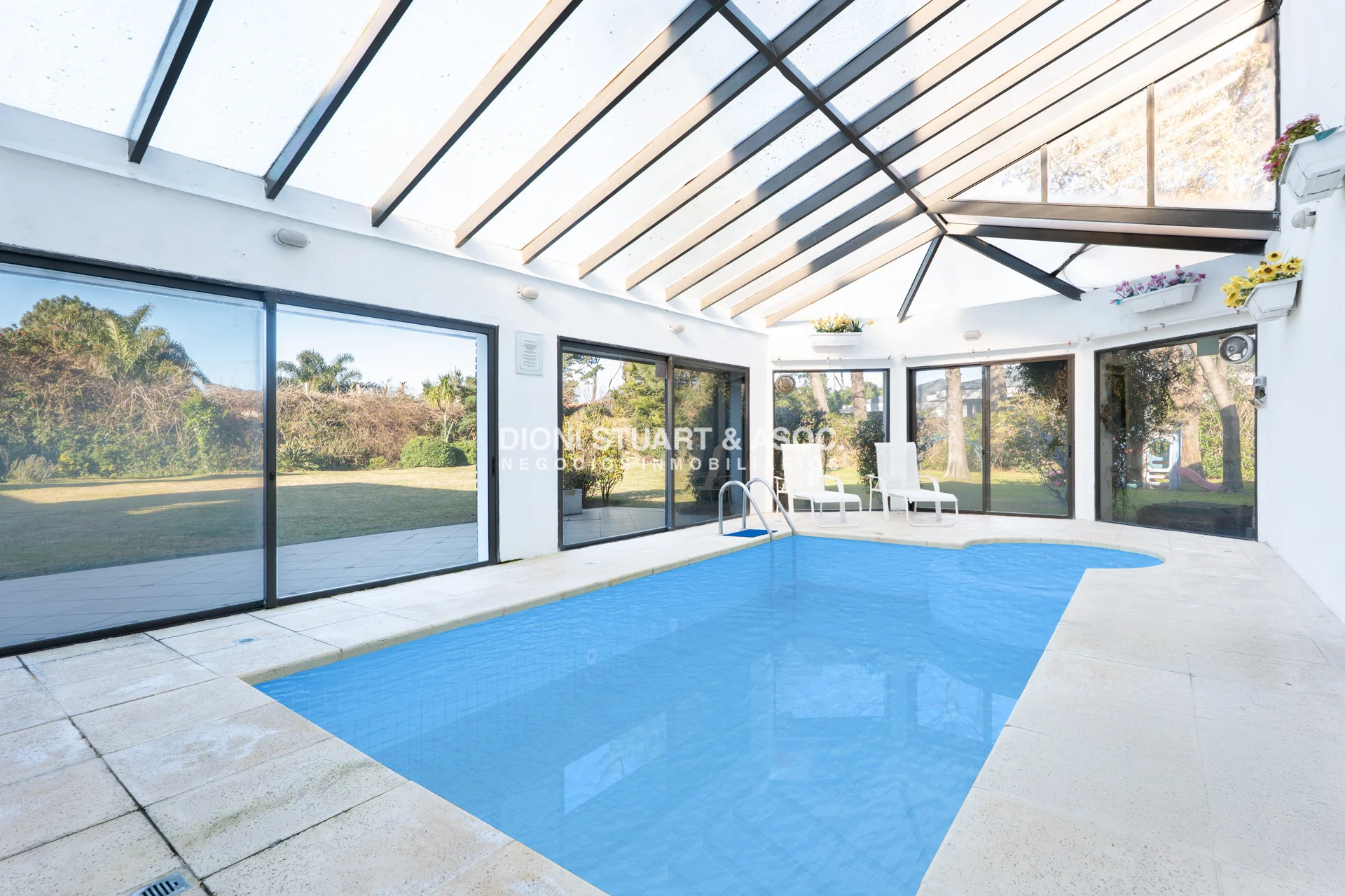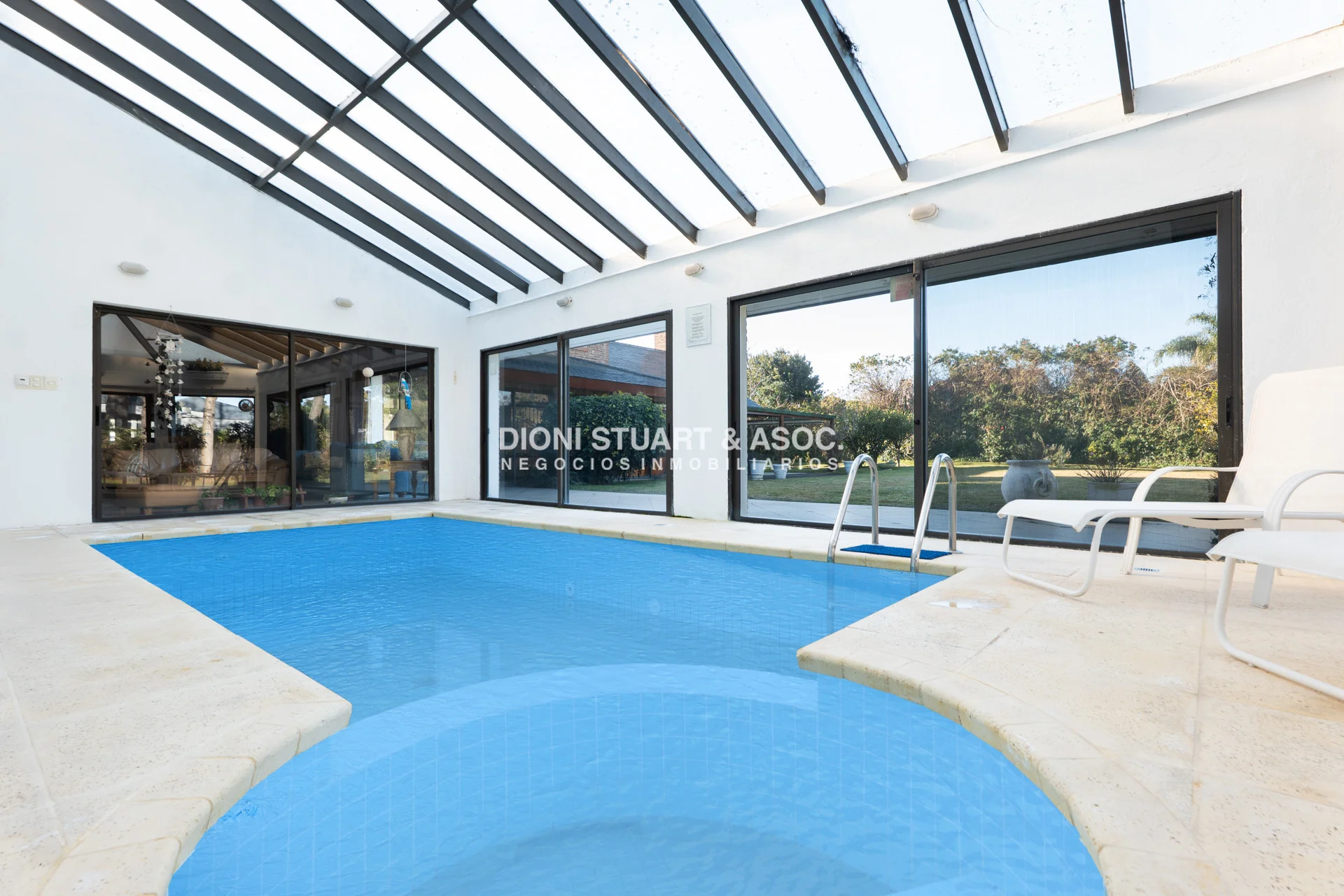 Se destaca su excelente calidad constructiva todo en doble pared de ladrillo, su amplio metraje de terreno, la piscina interior climatizada, un sauna seco y el confort de calefacción por losa radiante a gas sectorizada por ambiente.