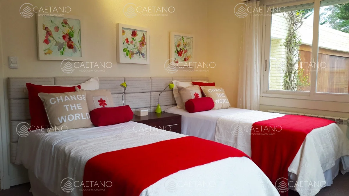 La casa consta de 2 máster suites ,2 dormitorios con baño doble, escritorio, jardín nuevo y riego automático , servicio completo , baño social, living, comedor, cocina , lavadero, calefacción central en toda la casa , además de aire acondicionado en cada habitación, alarma , antena satelital, wifi y 6 tv full hd smart etc