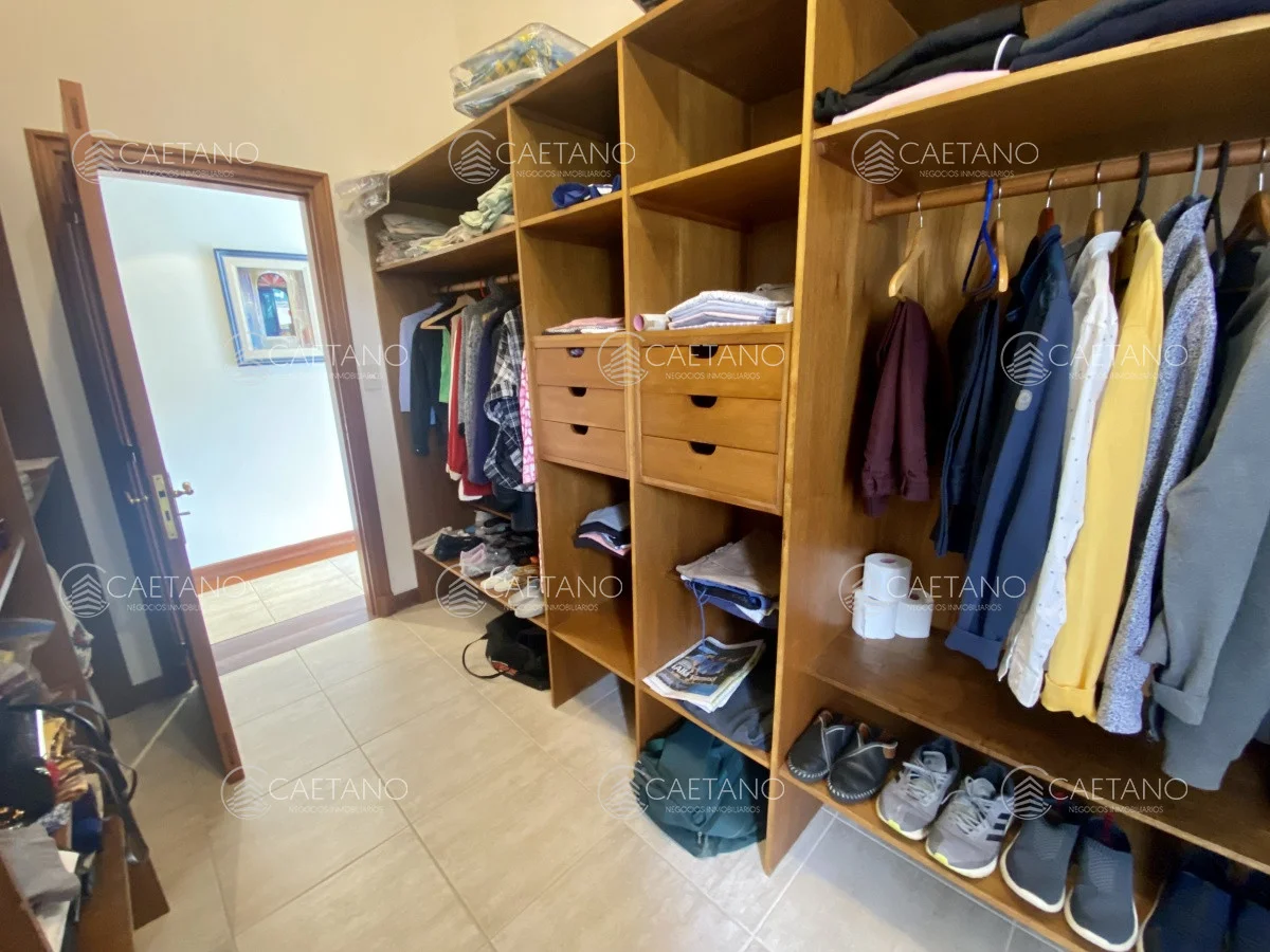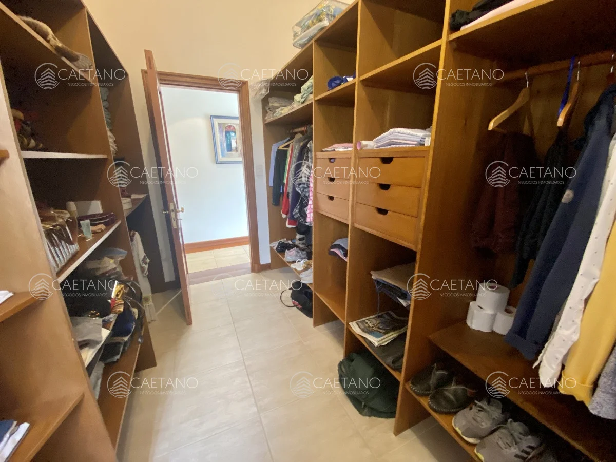 En planta alta: dos suite de muy buen tamaño con vestidor. Master suite al frente con 80 metros cuadrados privados, gran vestidor, baño compartimentado con doble lavado y jacuzzi, balcón con vista a playa mansa. Más dos dormitorios.