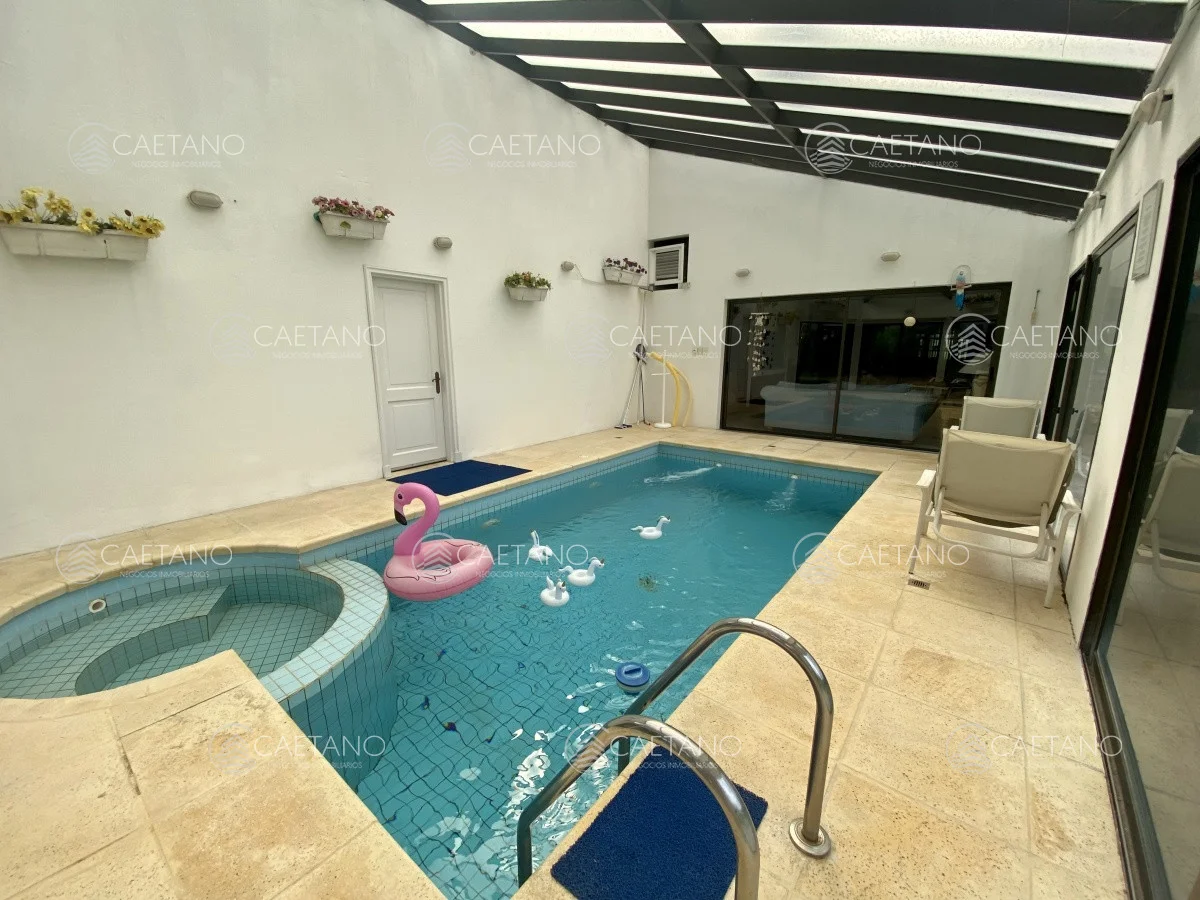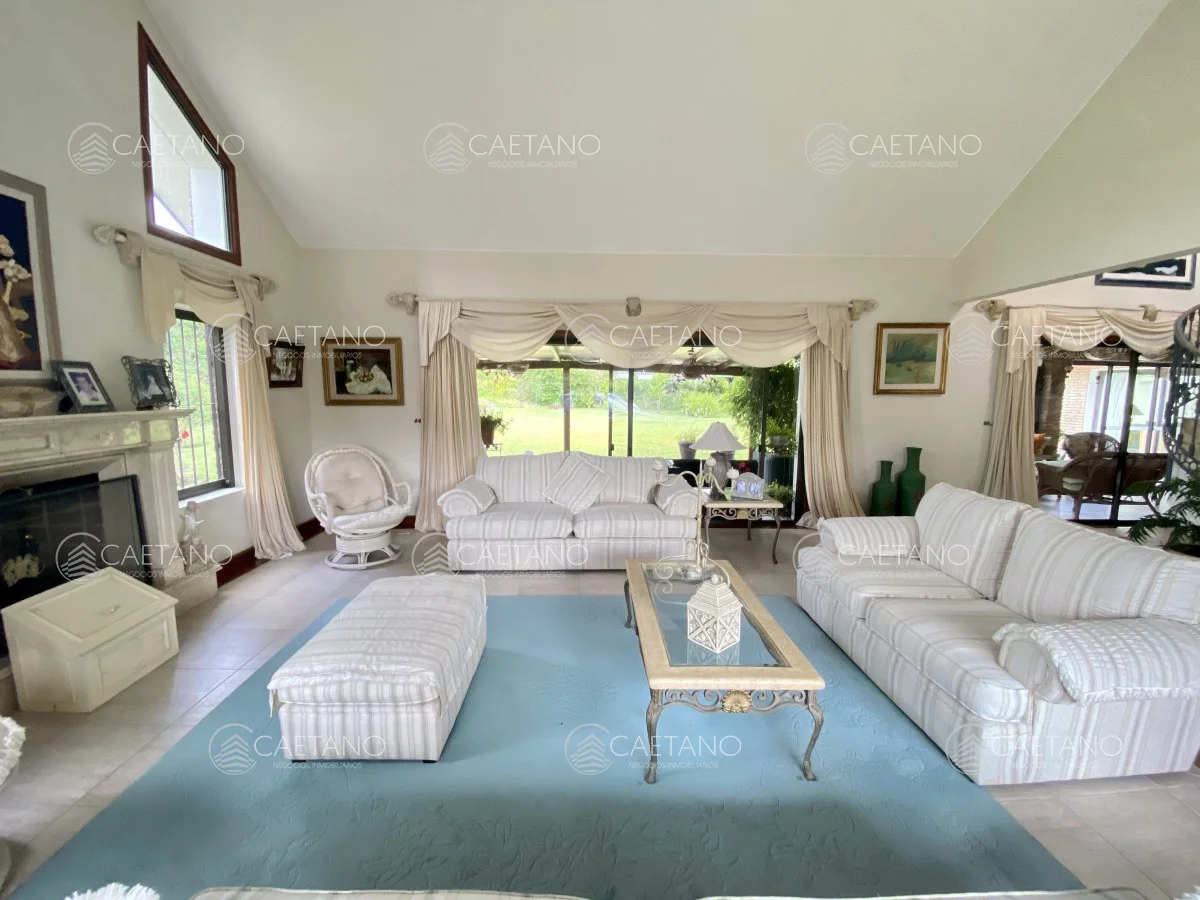Amplio y luminoso living con techos altos y gran estufa a leña, comedor formal y toilette. Cómodo jardín de invierno con acceso a barbacoa. Piscina con jacuzzi climatizada y techada con laminas de policarbonato ideal para disfrutar todo el año, sauna seco y sala de juegos.