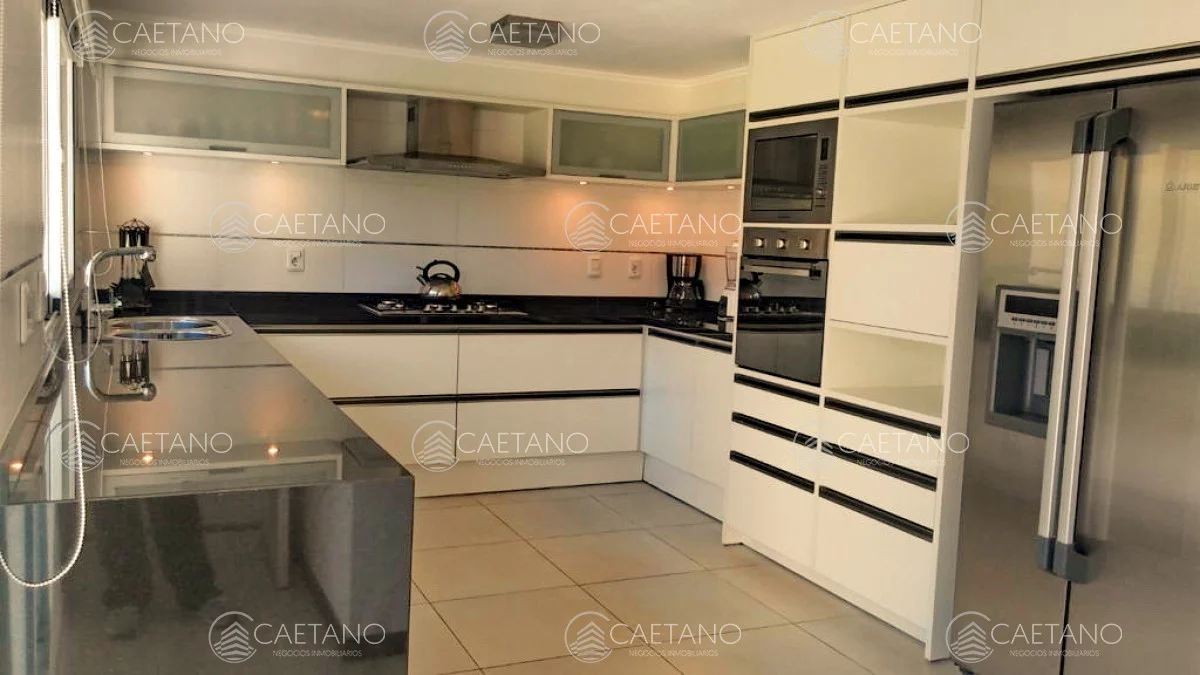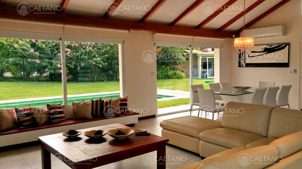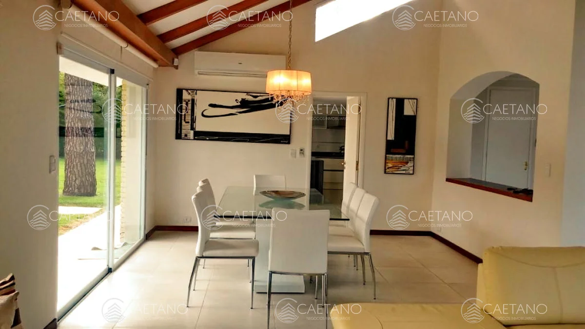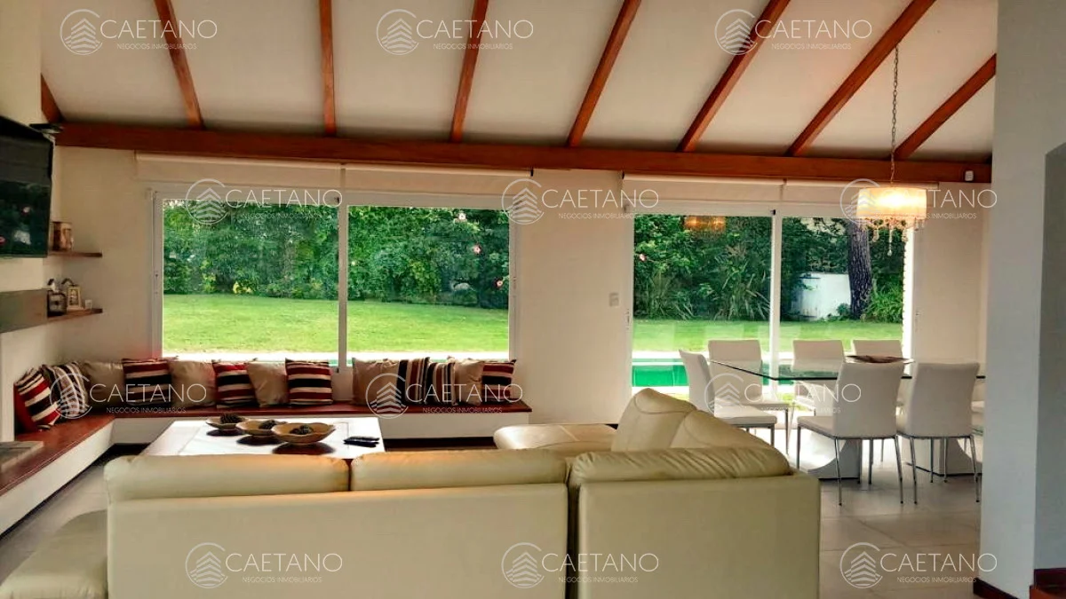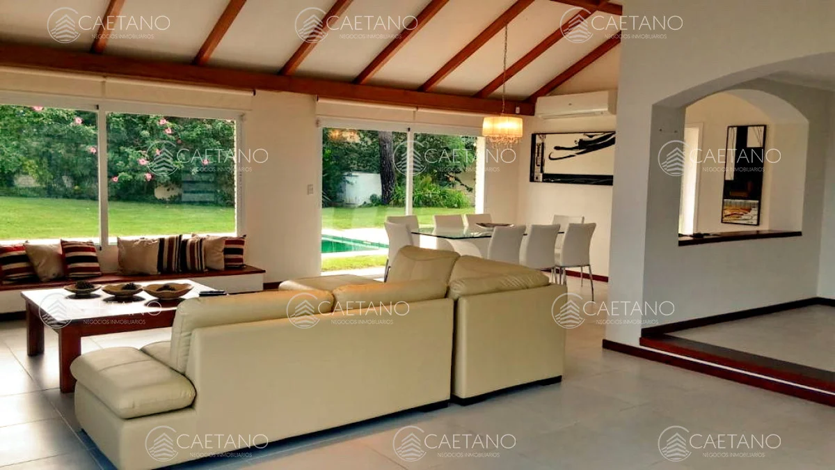 4 dormitorios (2 en suite), dependencia de servicio, 4 baños, toilette, un gran living con estufa a leña y comedor, cocina definida, completa y lavadero, aire acondicionado en cada habitación, Piscina climatizada, parrillero, riego automático, iluminación exterior automatizada, cochera, perímetro cerrado.