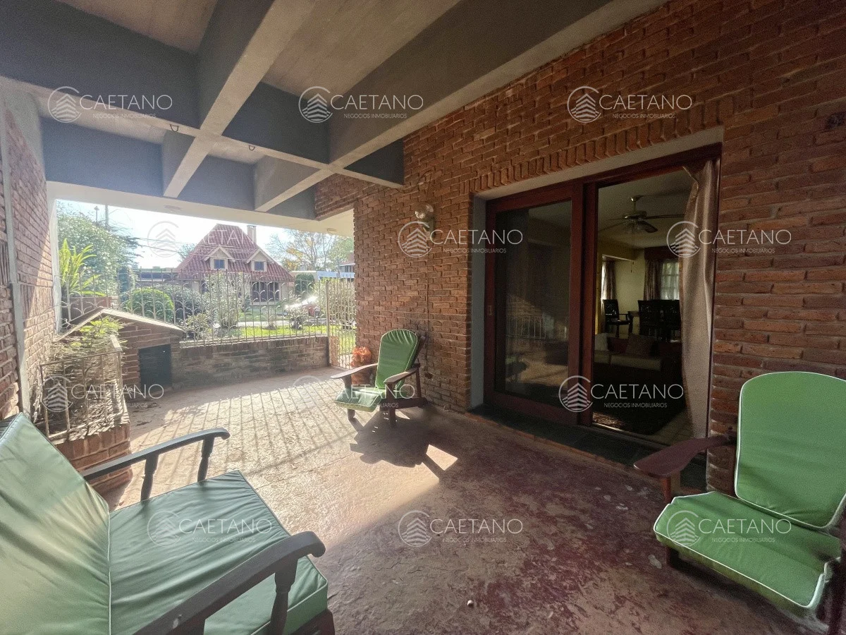 Amplio patio al fondo en dos niveles con parrillero y piscina.