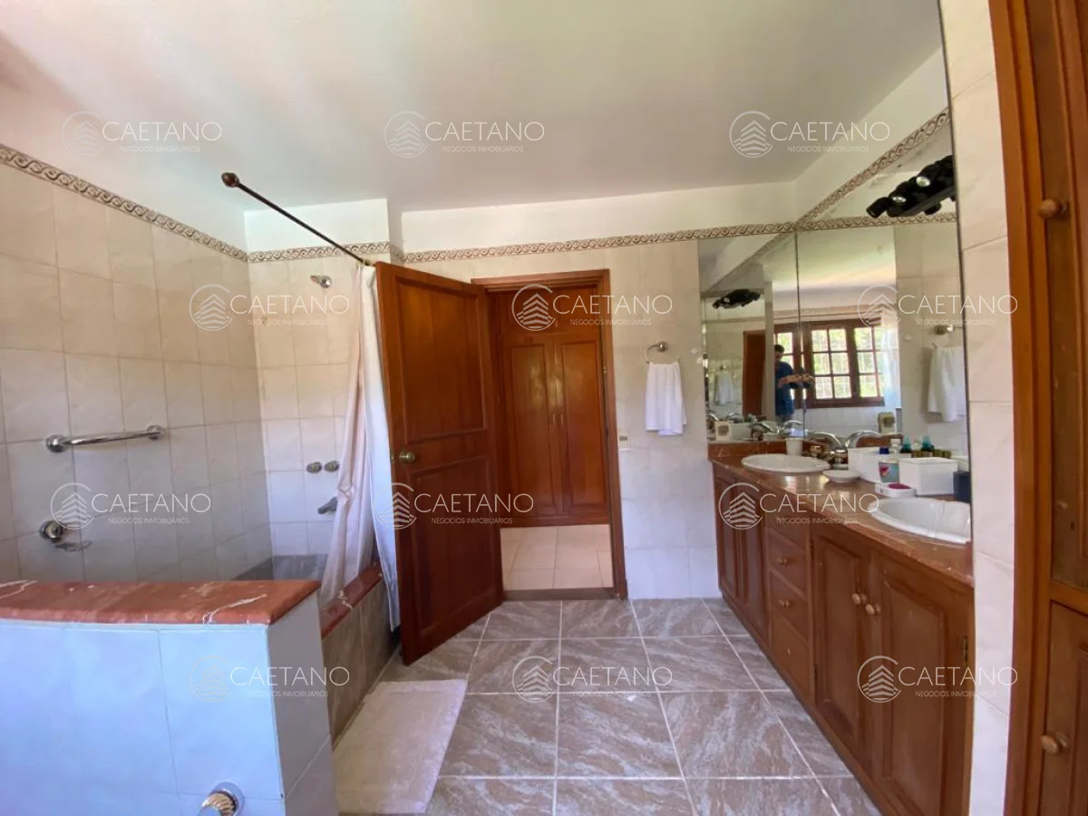 A la derecha hay un pasillo con un dormitorio con cama matrimonial, un dormitorio con dos camas simples, un baño completo, otro dormitorio con dos camas simples, segundo baño completo y cuarto dormitorio con baño completo en suite.