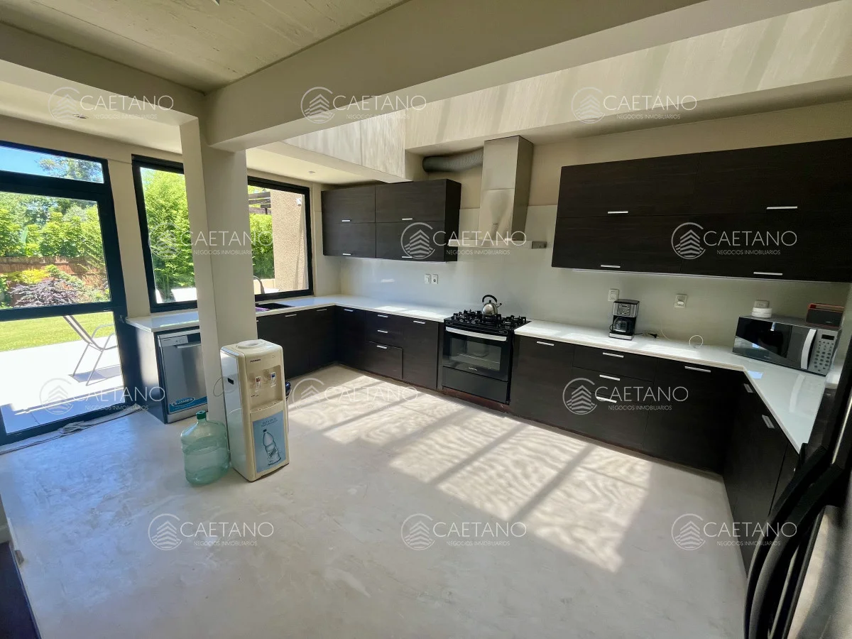 Planta Baja: Al ingresar, te recibe un amplio y luminoso living-comedor, que se conecta directamente con un gran parque que alberga una hermosa piscina ideal para disfrutar de los días soleados y un parrillero al aire libre. Esta planta cuenta con tres acogedores dormitorios, uno de ellos en suite, perfecto para mayor privacidad. Además, hay un baño completo y un toilette para mayor comodidad. El garaje tiene capacidad para dos autos. La casa está equipada con servicio de alarma interior y perimetral, brindando tranquilidad y seguridad.
