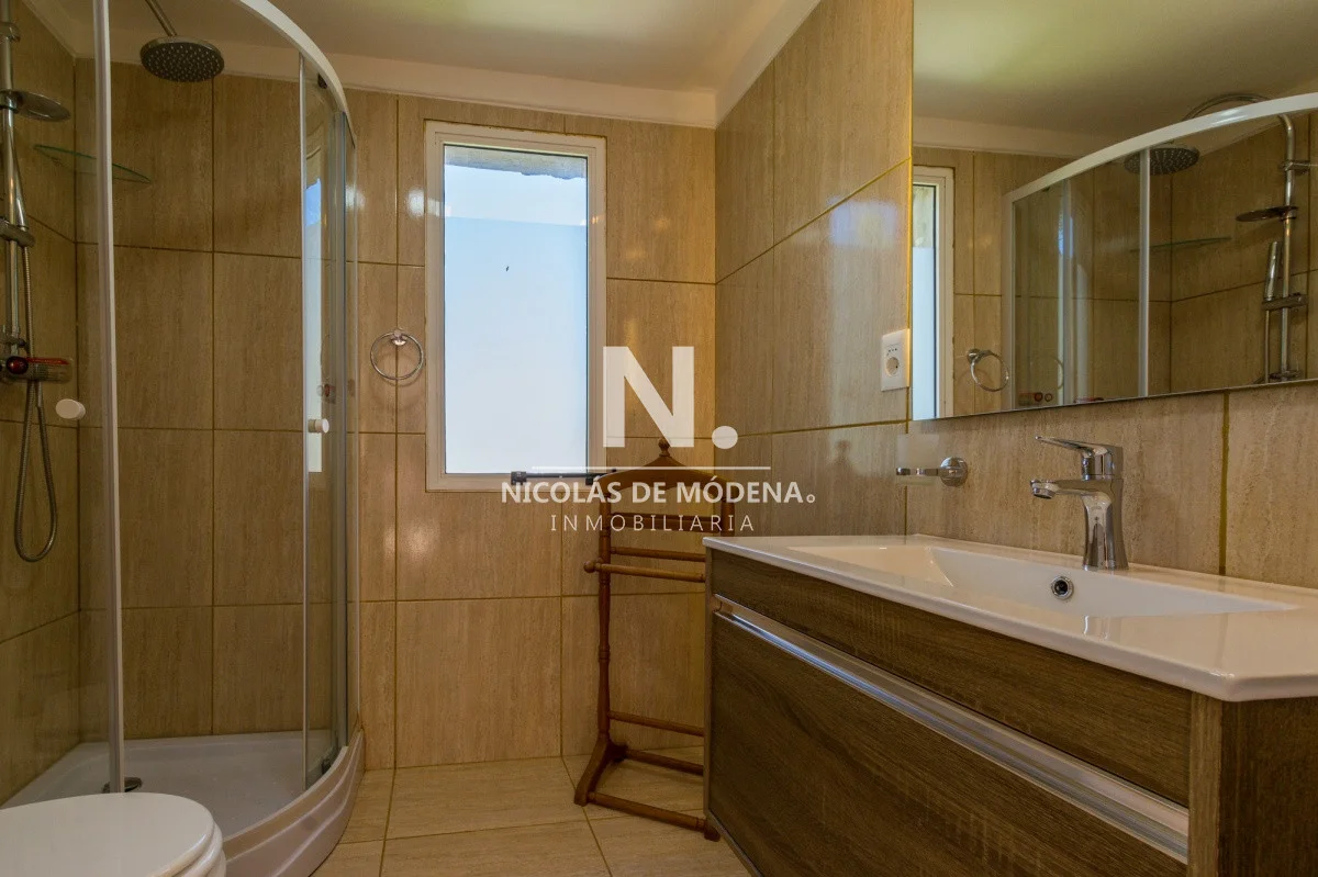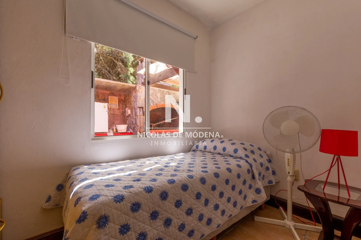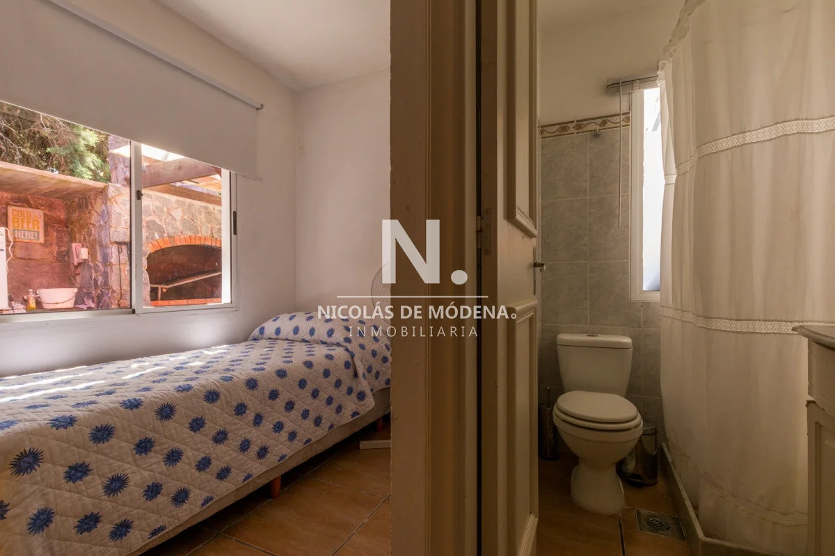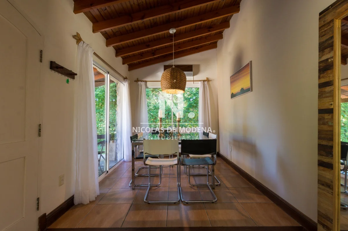 Con 3 dormitorios (1 en suite) distribuidos en planta baja la suite y dependencia con baño. En planta alta 2 dormitorios con baño y otro cuarto playroom. Totalmente equipada con aa, wifi, cable. Parrillero techado con horno de pizza y jardín muy disfrutable con piscina climatizada, totalmente cerrado.