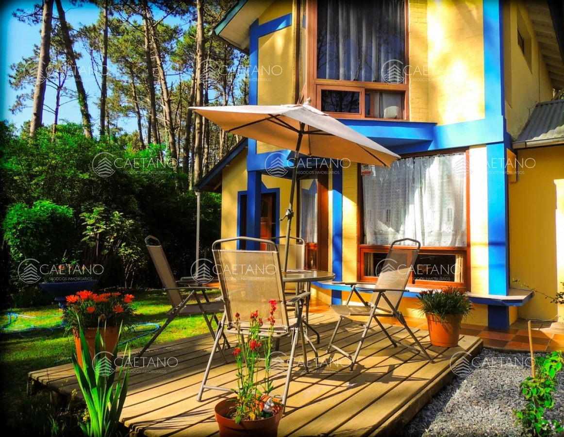 3 Dormitorios. 3 Baños en suite. Deje que el canto de los pajaros le saluden al despertar y el aroma de los pinos y eucaliptos le hagan sentir la plenitud de la vida. Tranquilidad Descanso Playa Bosque Pura Naturaleza. Casa para alquilar en parada 29 de la Playa Brava, En el privilegiado barrio de Rincon del Indio en Punta del Este Uruguay. Esta casa esta rodeada de pinos en un entorno tranquilo y acogedor, a solo 3 cuadras del mar y a 5 minutos en auto del centro de Punta del Este. Construida en dos niveles, cuenta con sala-cocina-comedor todo en un comodo ambiente con amplios ventanales y una linda vista a un bosque de pinos con aves de la zona. Posee dos amplios dormitorios cada uno con su propio baño, uno de ellos con bañera. Jacuzzi exterior con agua caliente. Esta casa tiene 2 caseros en vivienda aparte dentro del mismo terreno, ellos se encargar del mantenimiento y limpieza y cambio de toda la ropa de cama y de baño cada 3 dias. Usted conserva toda su privacidad.