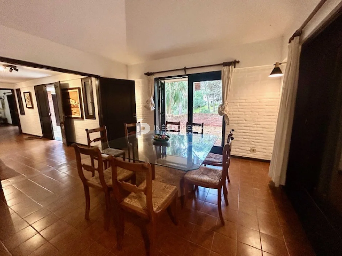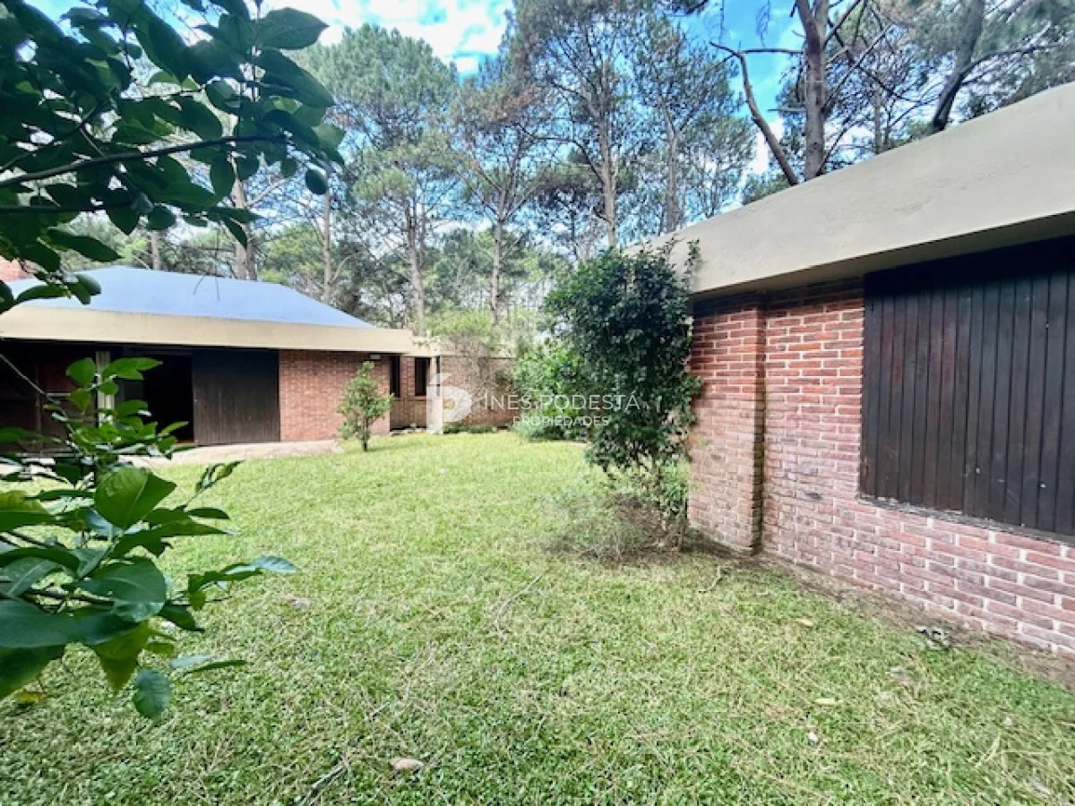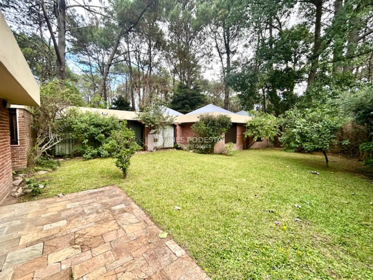 Club del Lago, propiedad de la década del 80 de muy buena construcción, frente a la cancha de Golf, entorno agradable de bosque y pinos, 1300 m2 de terreno y 300 m2 edificado. En una sola planta, ambientes amplios, doble circulación, Living con estufa a leña, comedor, toilette de recepción, amplia cocina, lavadero 3 dormitorios, 2 baños (principal en suite), dependencia de servicio, garage - cochera