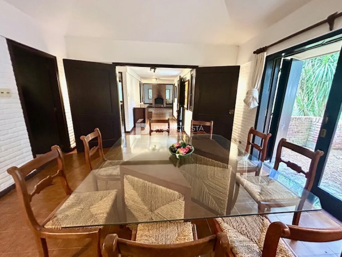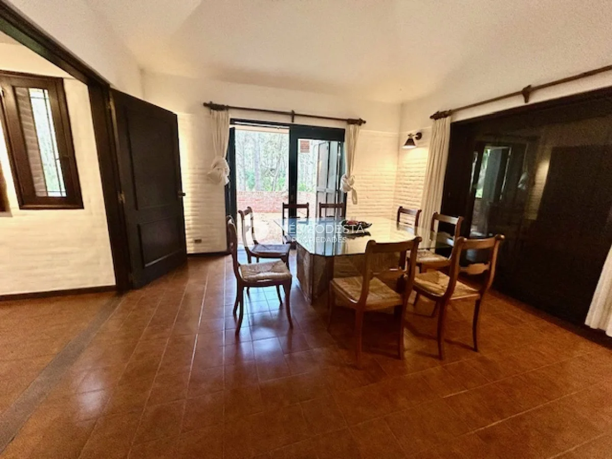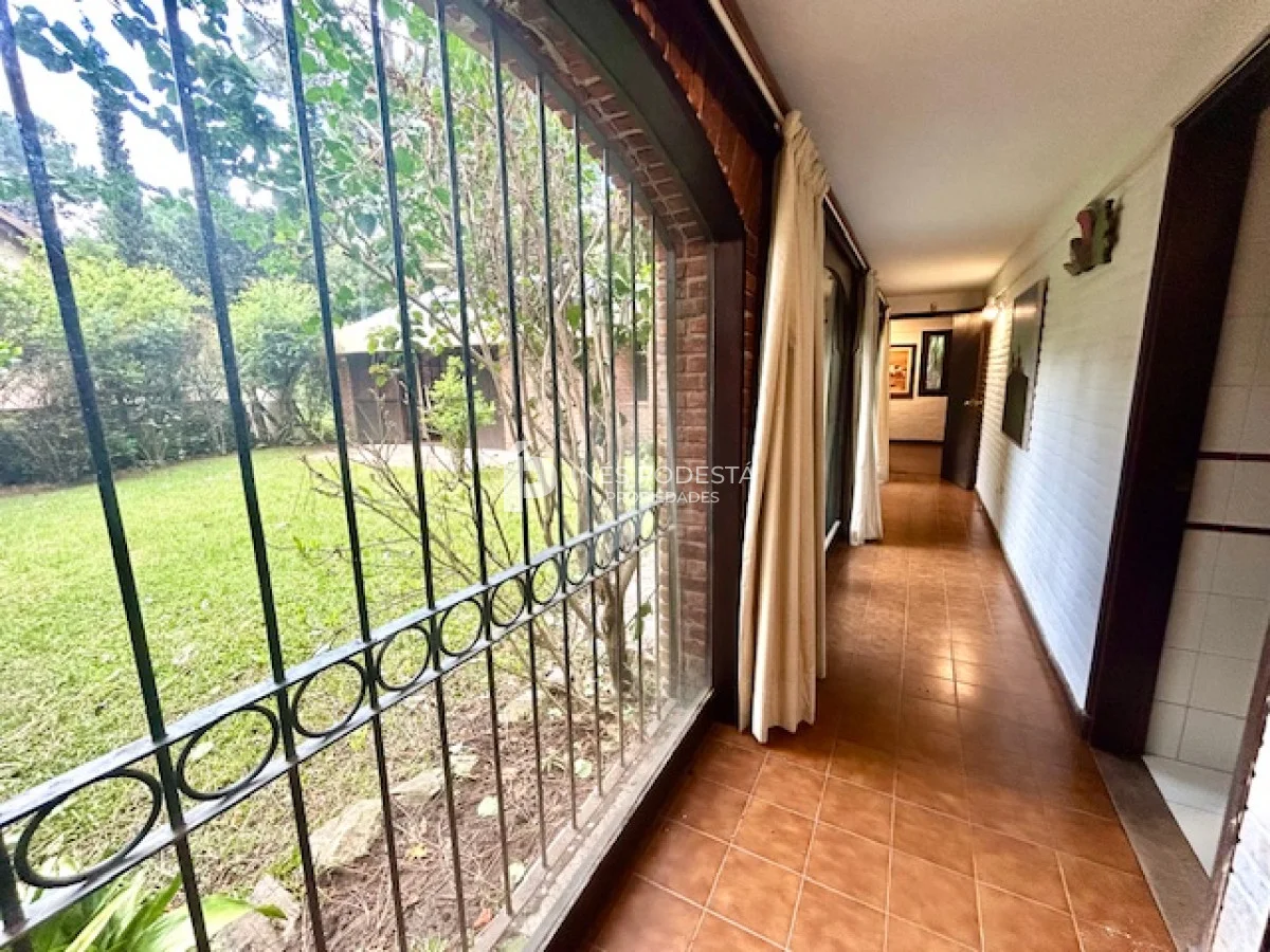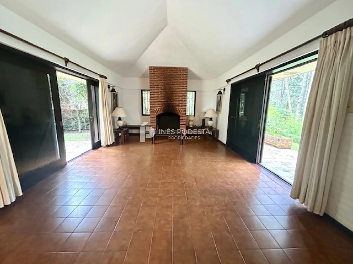Club del Lago, propiedad de la década del 80 de muy buena construcción, frente a la cancha de Golf, entorno agradable de bosque y pinos, 1300 m2 de terreno y 300 m2 edificado. En una sola planta, ambientes amplios, doble circulación, Living con estufa a leña, comedor, toilette de recepción, amplia cocina, lavadero 3 dormitorios, 2 baños (principal en suite), dependencia de servicio, garage - cochera