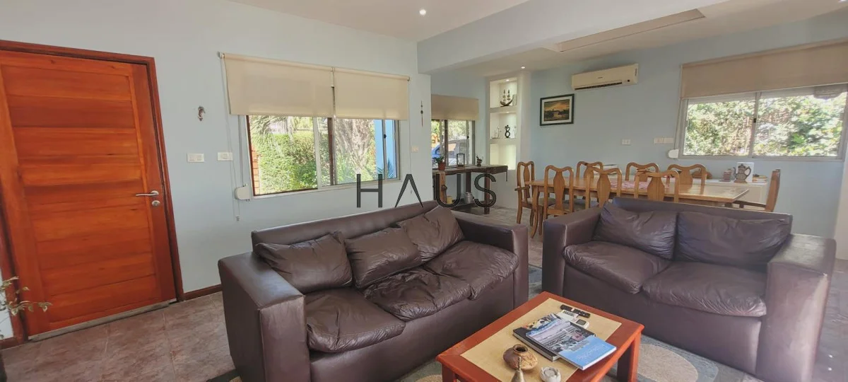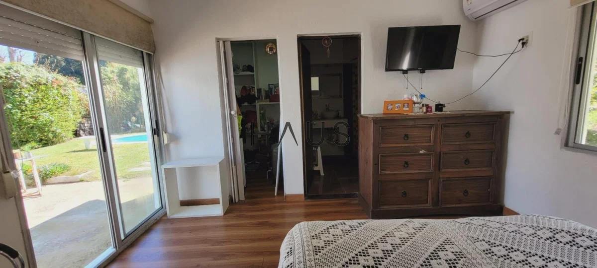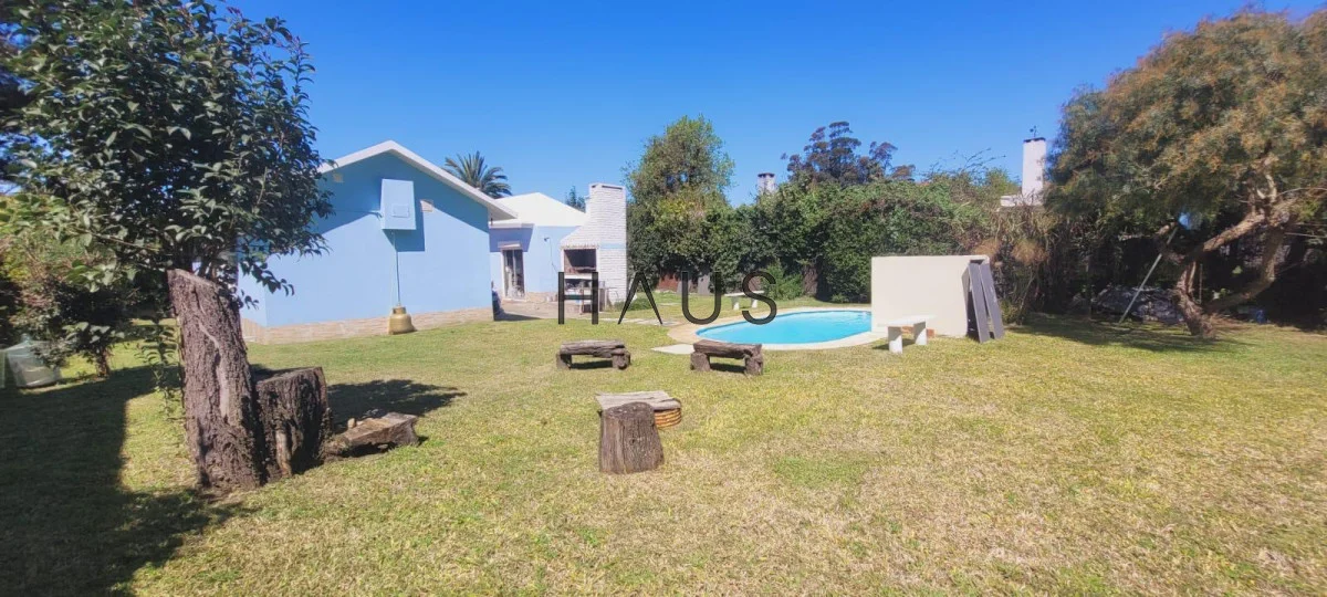Oportunidad en pinares, casa construcción tradicional paredes de ticholo, techo hormigón, entorno natural con mucho verde, vecinos todo el año y todos los servicios cerca (colegio, supermercados, etc..) la misma cuenta con 3 dormitorios, el dormitorio principal en suite, 2 baños, living comedor con cocina semi integrada, calefacción estufa a leña y aire acondicionado, todos los ambientes con luz natural, aberturas con persianas, al fondo nos encontramos con el parrillero abierto, piscina y jardín amplio, al frente tenemos la cochera con portón eléctrico, además cuenta con pozo de agua y riego, agenda tu visita.