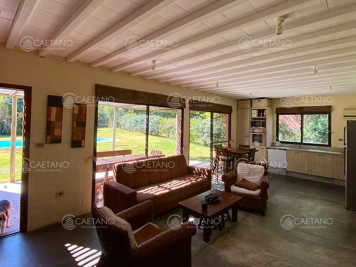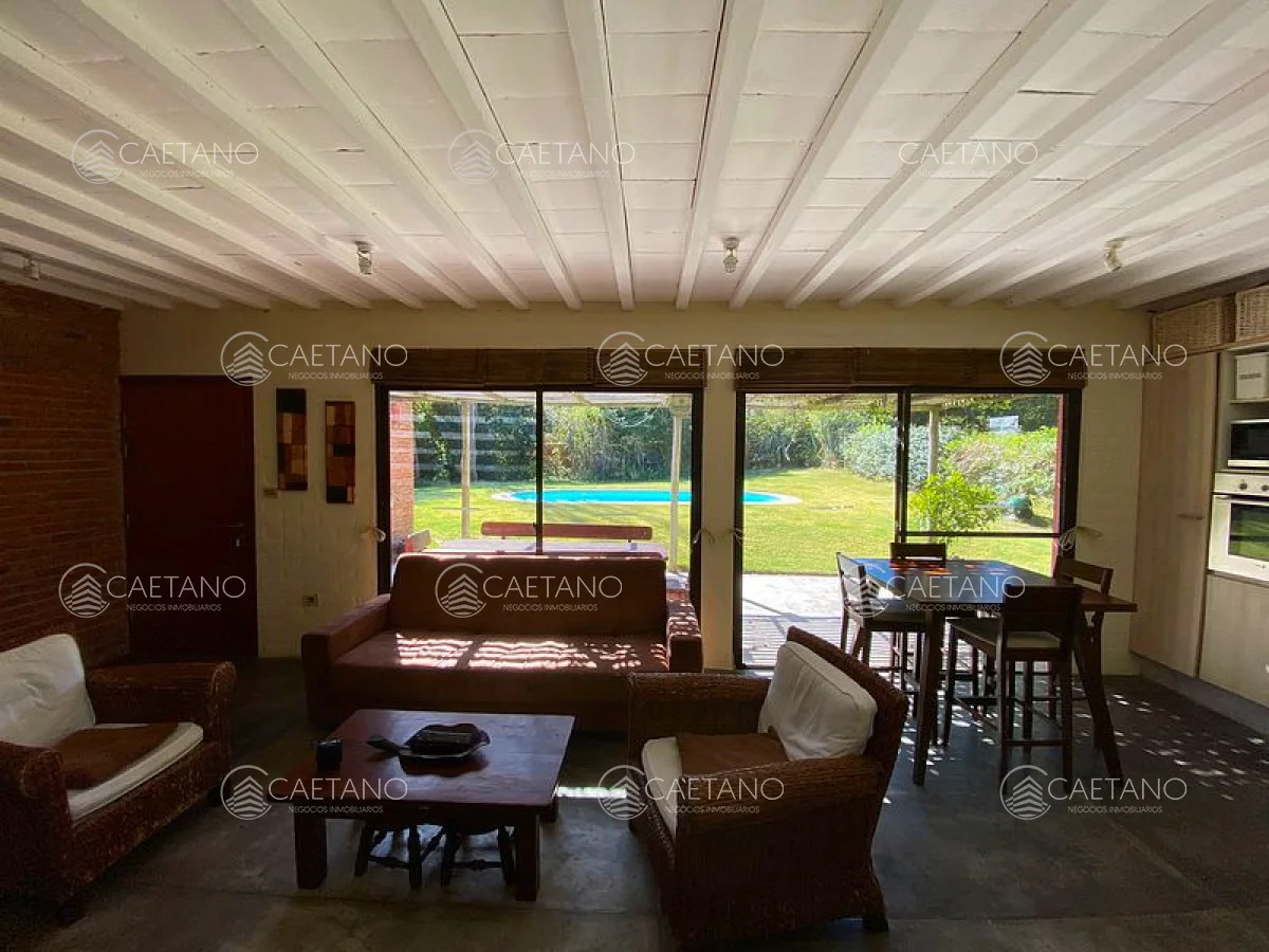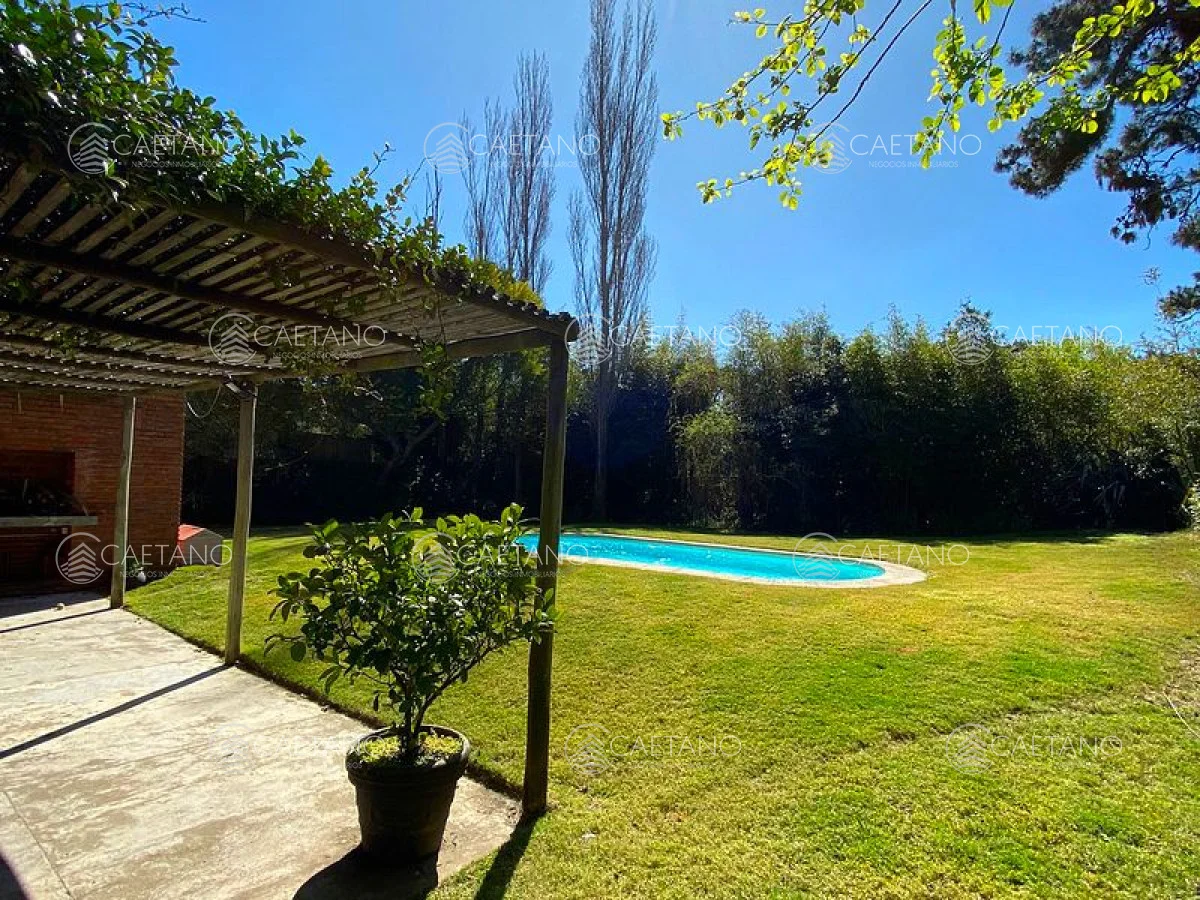 Lindísima casa ubicada cerca de la playa en el barrio de Pinares Luminosa y de construcción moderna. Se desarrolla en una sola planta. Living comedor con cocina integrada, dos dormitorios en suite, jardín con parrillero y piscina. Amplio terreno con posibilidad de ampliación. No dude en consultar. Referencia Interna : Tera-10837