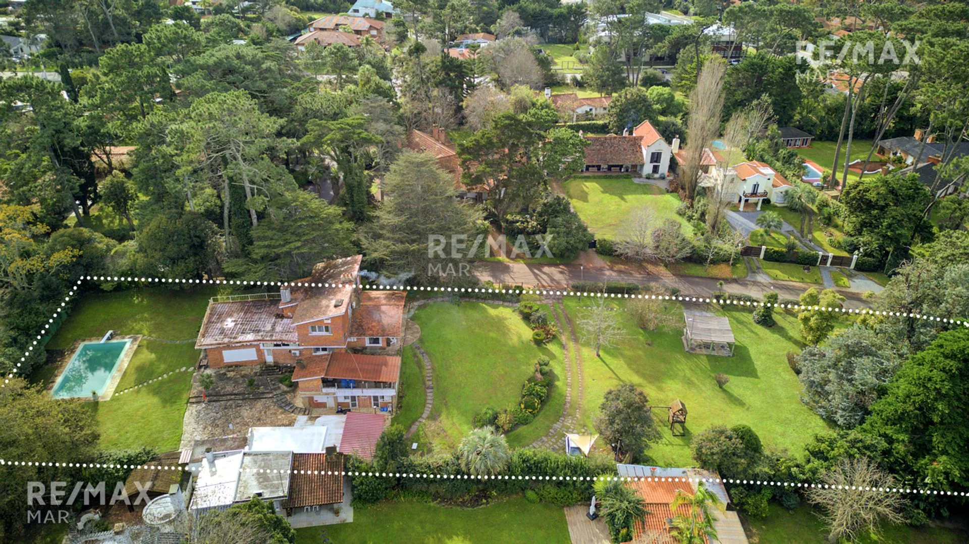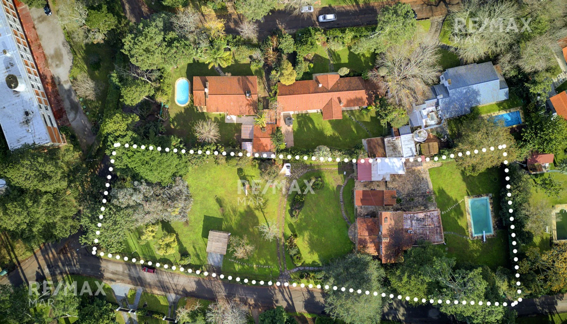 La vivienda se emplaza en un gran terreno de 3869m2 parquizado con Piscina. De construcción tradicional la casa principal cuenta con 8 dormitorios y 6 baños.