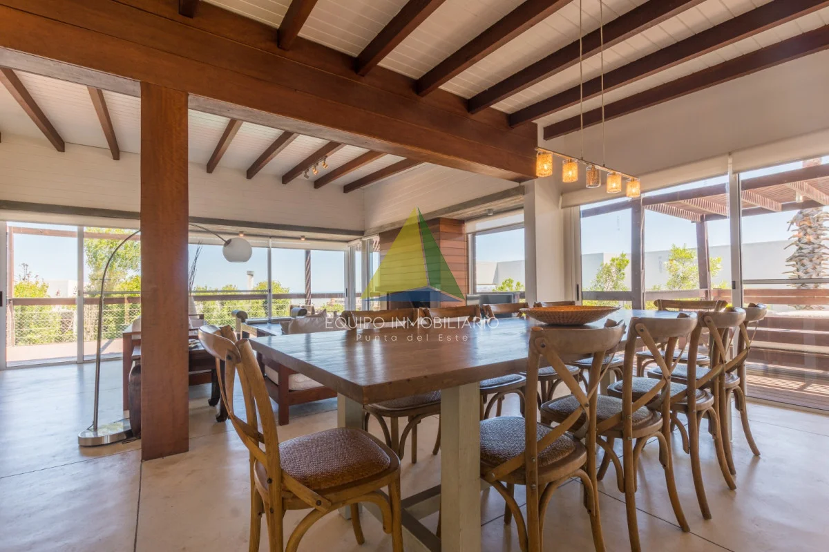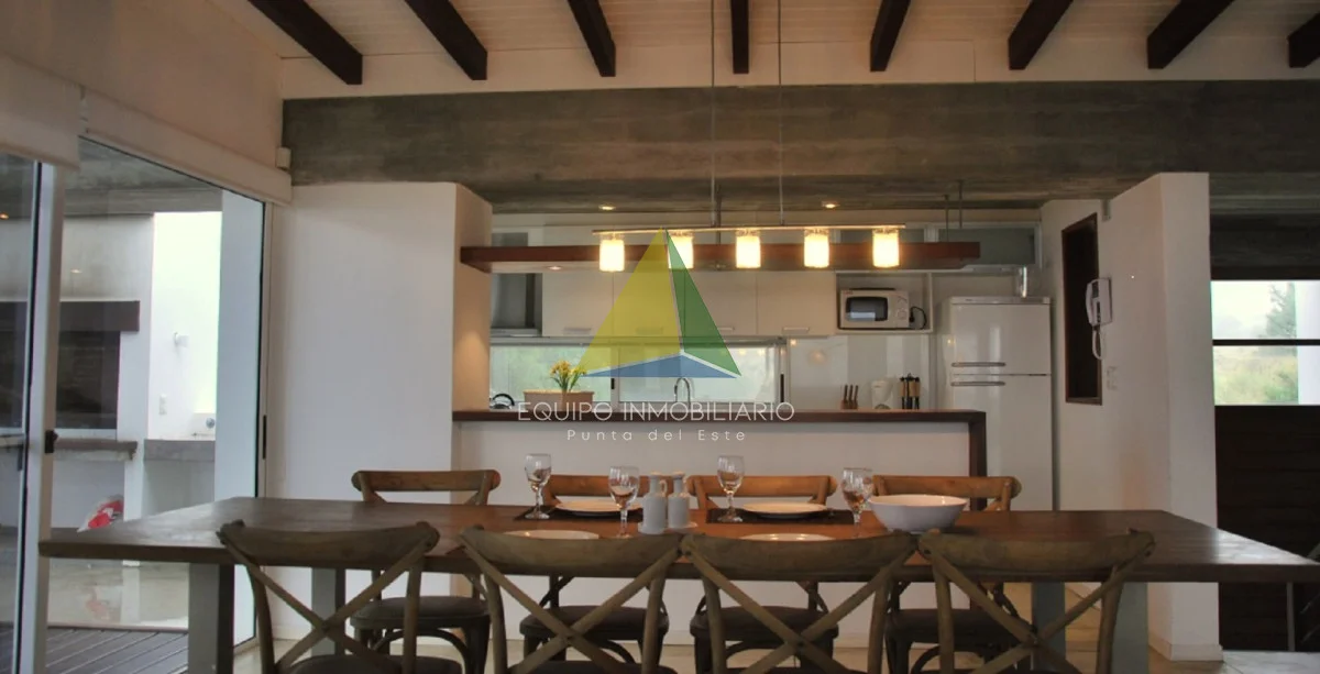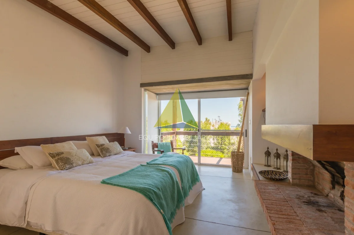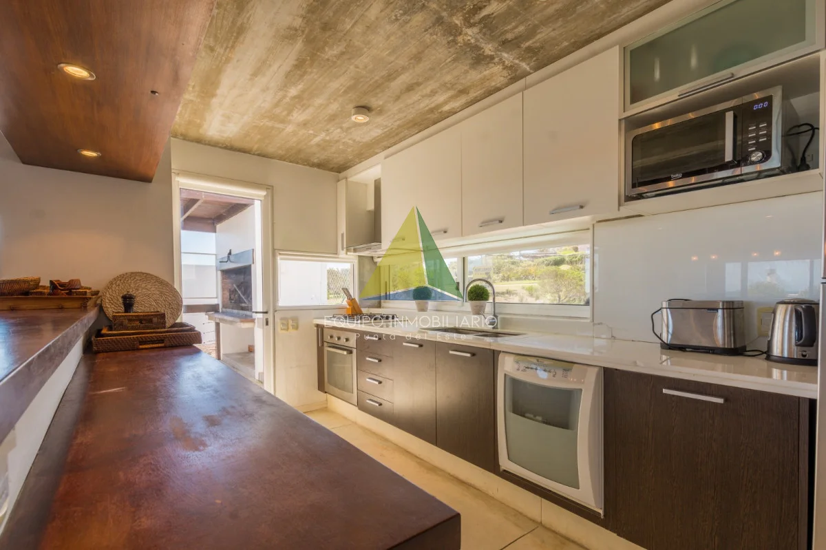 Living comedor con estufa a leña, cocina americana, 4 dormitorios, 3 baños (2 en suite), dependencia de servicio con baño (opcion 5 to dormitorio), lavadero, terrazas, parrillero, piscina, cochera
