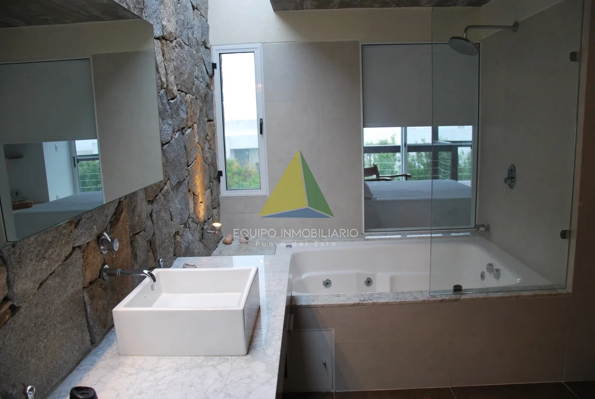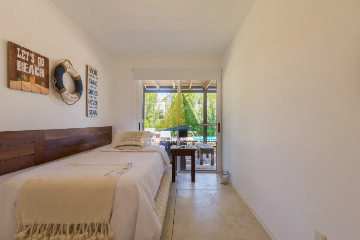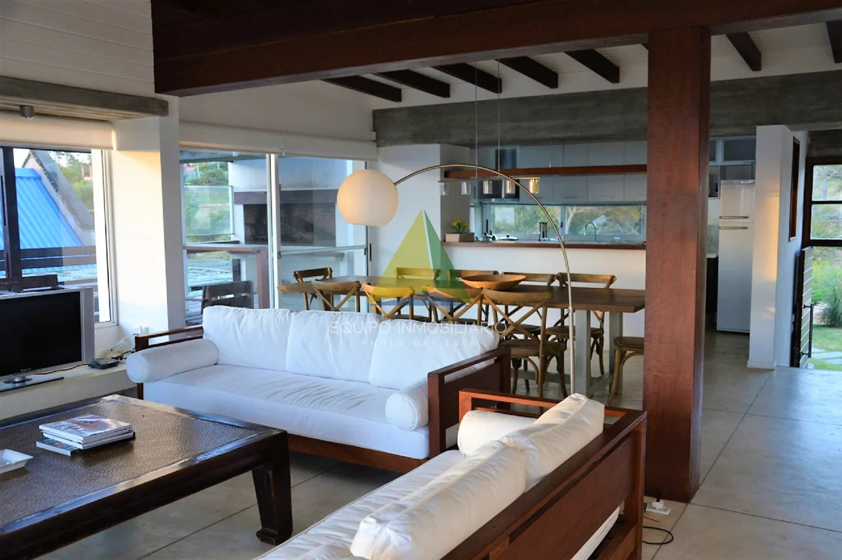 Living comedor con estufa a leña, cocina americana, 4 dormitorios, 3 baños (2 en suite), dependencia de servicio con baño (opcion 5 to dormitorio), lavadero, terrazas, parrillero, piscina, cochera