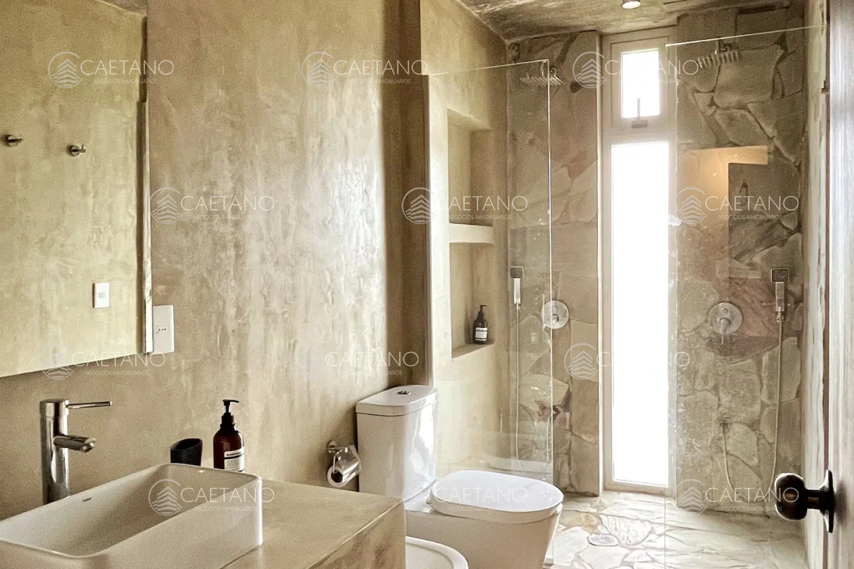 La casa principal cuenta con 3 dormitorios y 3 baños completos, cocina americana, living comedor..