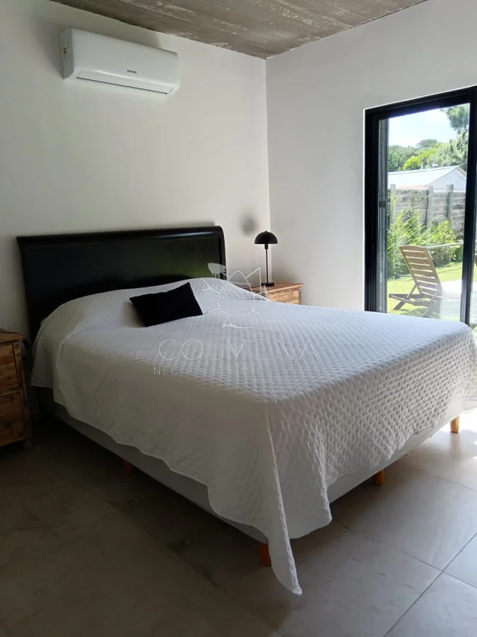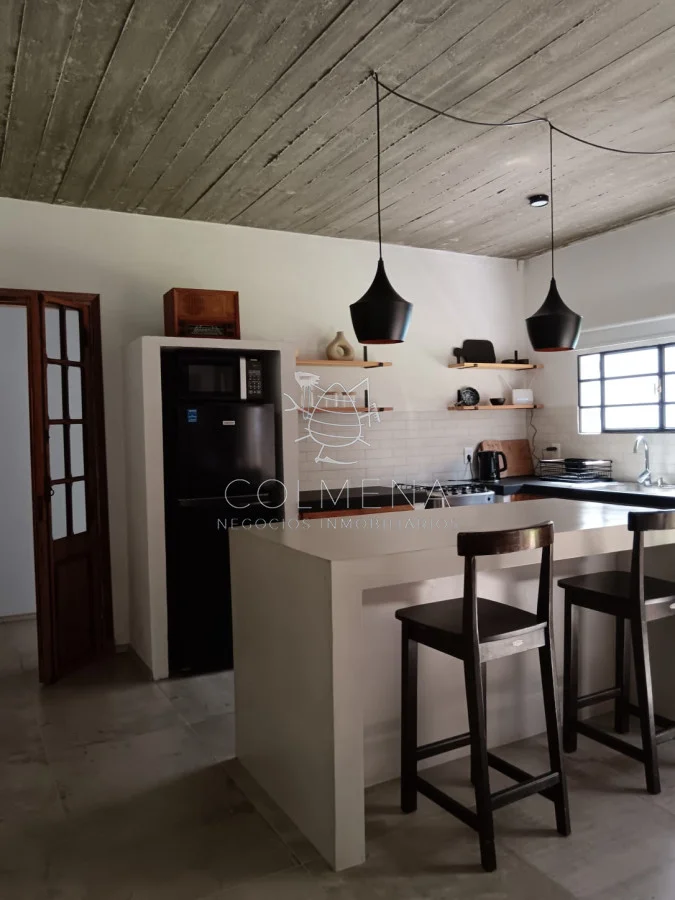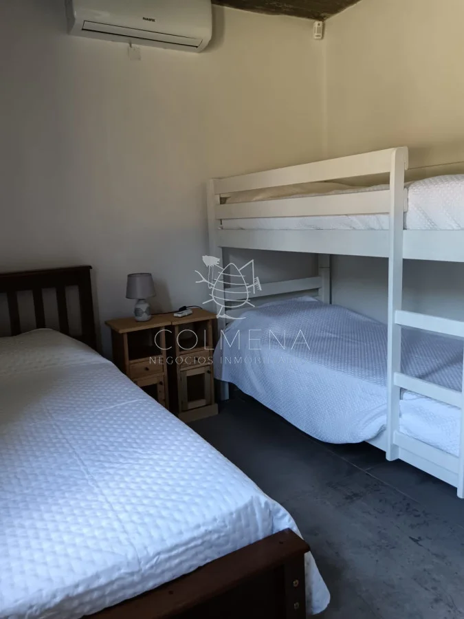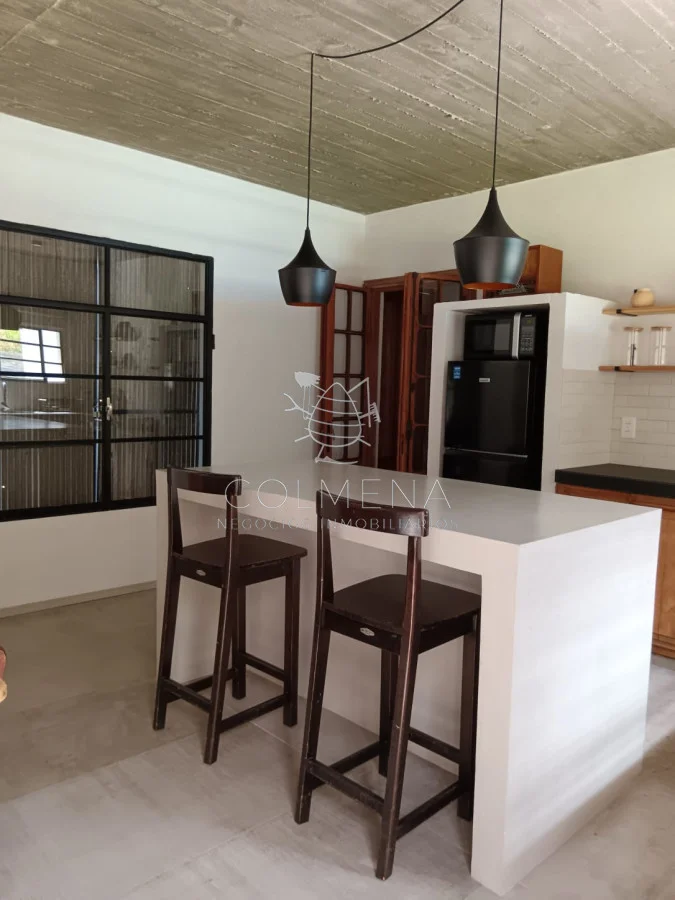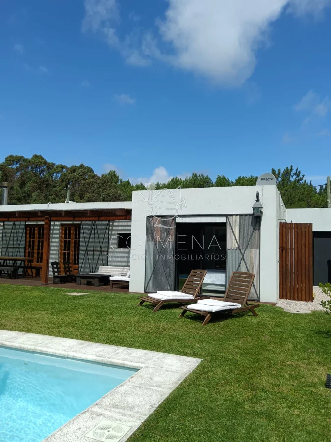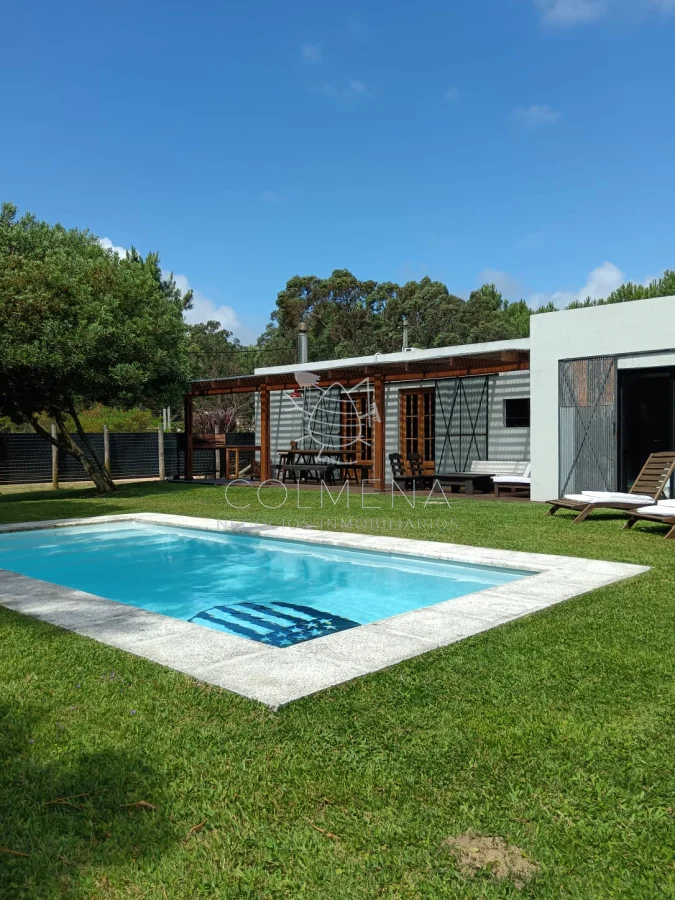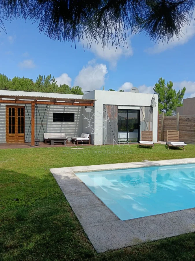 Hermosa zona Tranquilidad, Seguridad, cerca de la playa... Una casa muy luminosa, soleada y de buena ventilación. Living comedor con cocina integrada. Tiene calefactor a leña para el invierno. Cerca del Almacén de Ramos generales que hay en la zona. Cuenta con dos dormitorios (con posibilidades de ampliar la construcción). Dormitorio principal con salida directo a la pileta, una belleza total. El otro dormitorio tiene capacidad para cama matrimonial o para colocar dos cuchetas perfectamente... Baño de buen tamaño, con amplia ducha cerrada con puerta de vidrio. Hermosa Galería techada con Parrillero y Piscina de buen tamaño. Hermoso jardín al frente y al fondo con buena sombra. Enero 2026. Alquilada. Referencia Interna : Tera-10026