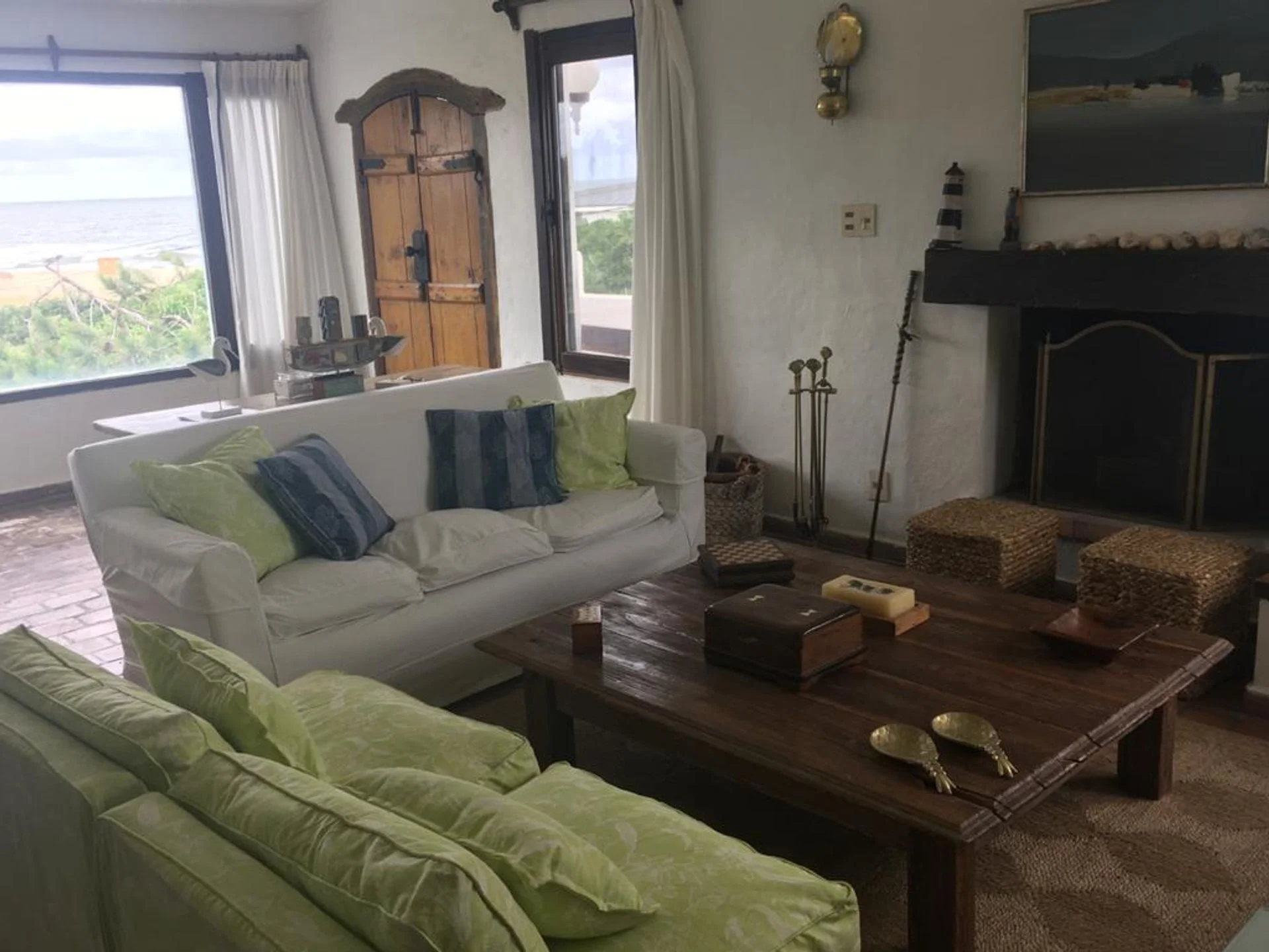 Sobre a la Ruta 10 comenzando Montoya, frente al mar, se encuenrra esta propiedad de 280 metros construidos en diferentes niveles, con living comedor con vista al ma y estufa de leña, cocina definida con comedor diario, 5 dormitorios, 5 baños, dos de ellos en suite, play ground, servicio completo. Parrillero barbacoa en el jardín, piscina . Superficie total en 2 terrenos 2.334.