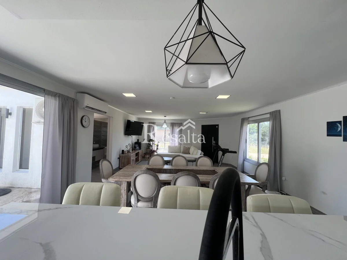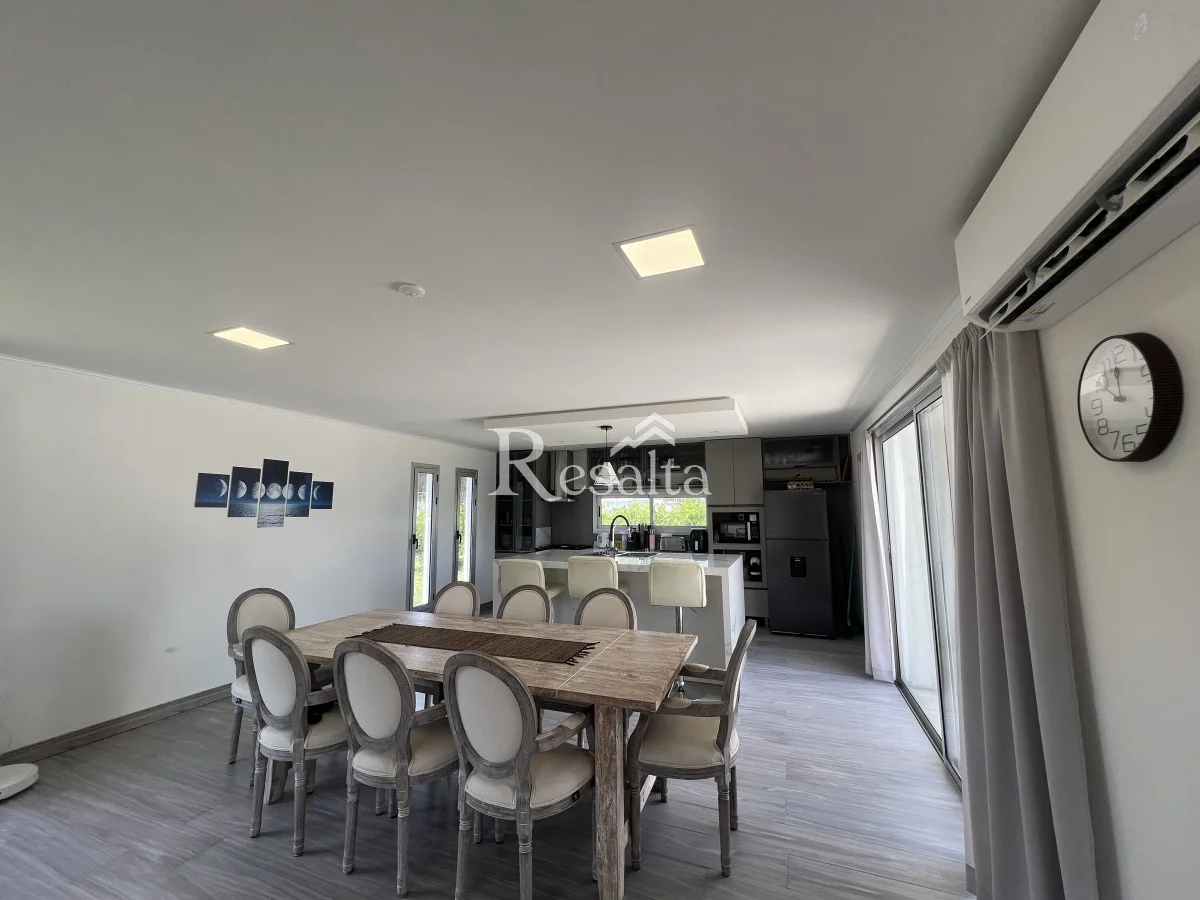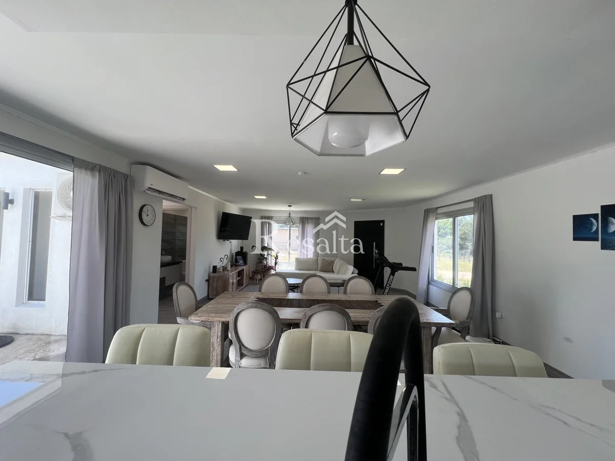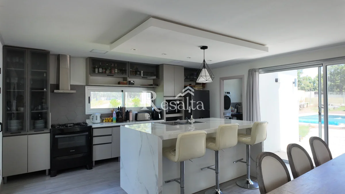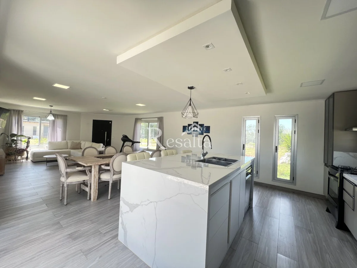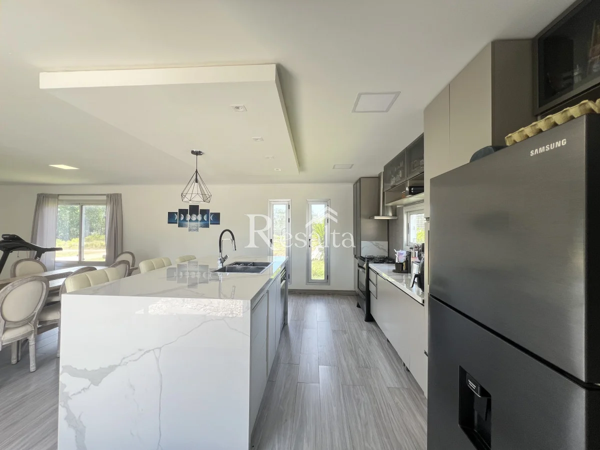 La cocina, amplia y moderna, y se abre a un espacioso living y comedor. Este espacio de concepto abierto es perfecto para entretener a los invitados o disfrutar de una noche tranquila en casa.