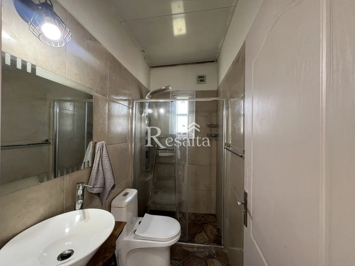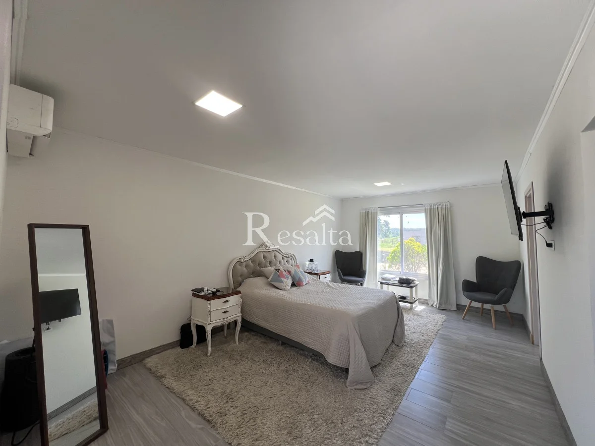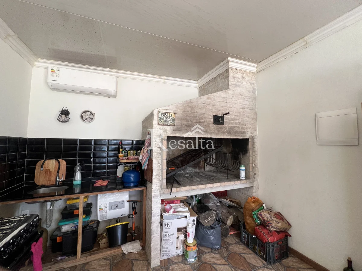 Piscina climatizada de 40 metros, barbacoa al fondo cerrada con baño propio, jardín amplio con espacio para fogatas, cochera techada.