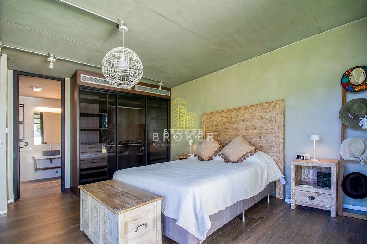 Arquitectura de diseño en estilo industrial-minimalista con hormigon visto y excelente fundacion. Esta propiedad fue dise?ada y equipada con la ultima tecnologia para ofrecer el maximo confort. Gran living-comedor con estufa de alto rendimiento en hierro fundido, dos dormitorios, dos baños, el dormitorio principal en suite. Cocina integrada con electrodomesticos de ultima generacion y mesada e isla en Dekton. Pergola techada con parrillero de acero inoxidable y cocina exterior en hierro