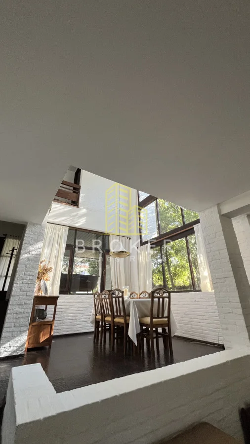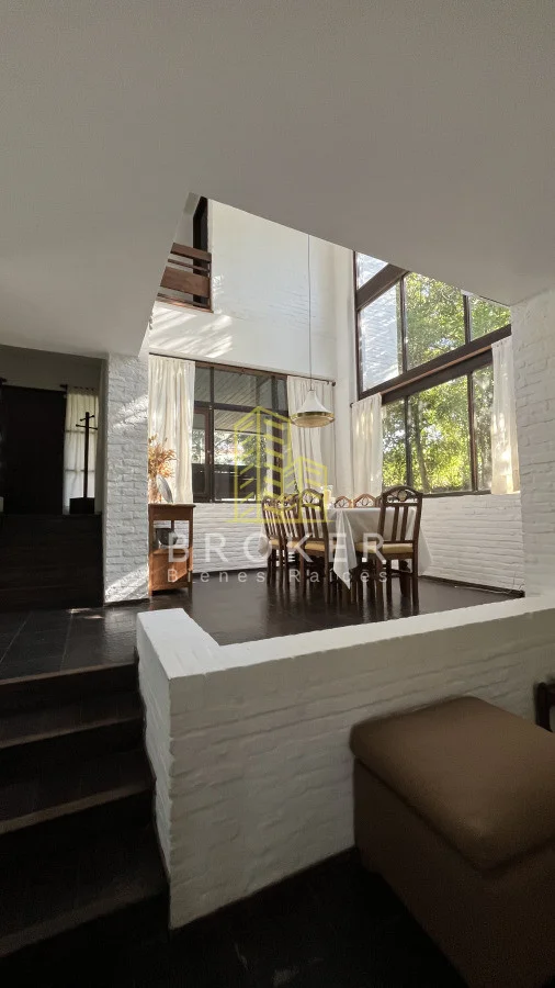 Planta BAJA: Recibidor, comedor con ventanal en doble altura, living en desnivel con estufa a leña.
